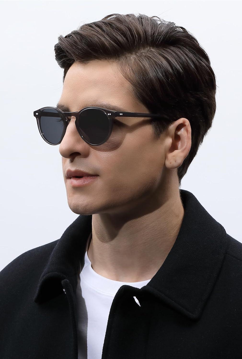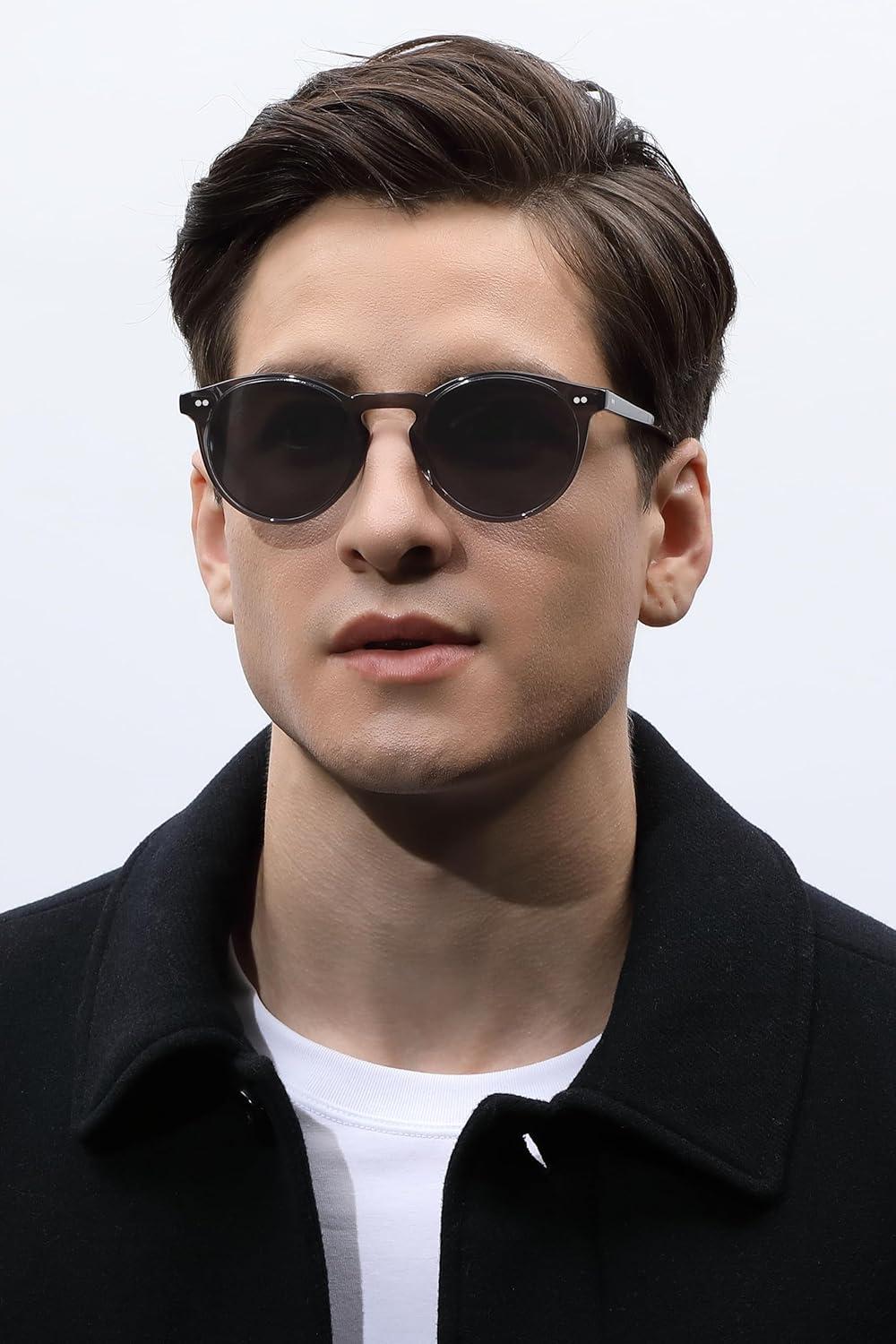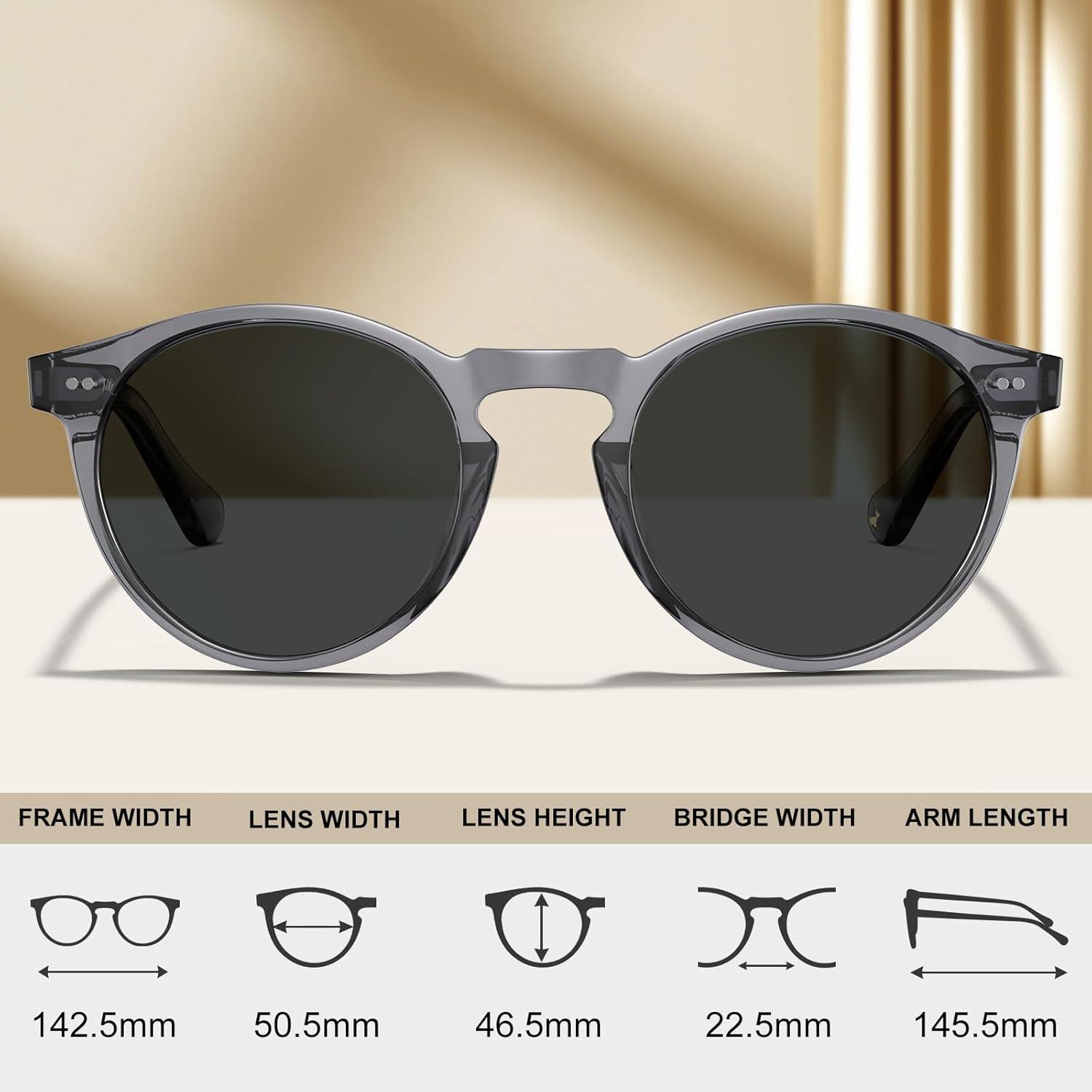 CARFIA Acetate Vintage Round Polarized Sunglasses for Men UV400 Lenses Hand-crafted Frame(6. Transparent Grey Frame Grey Lens)