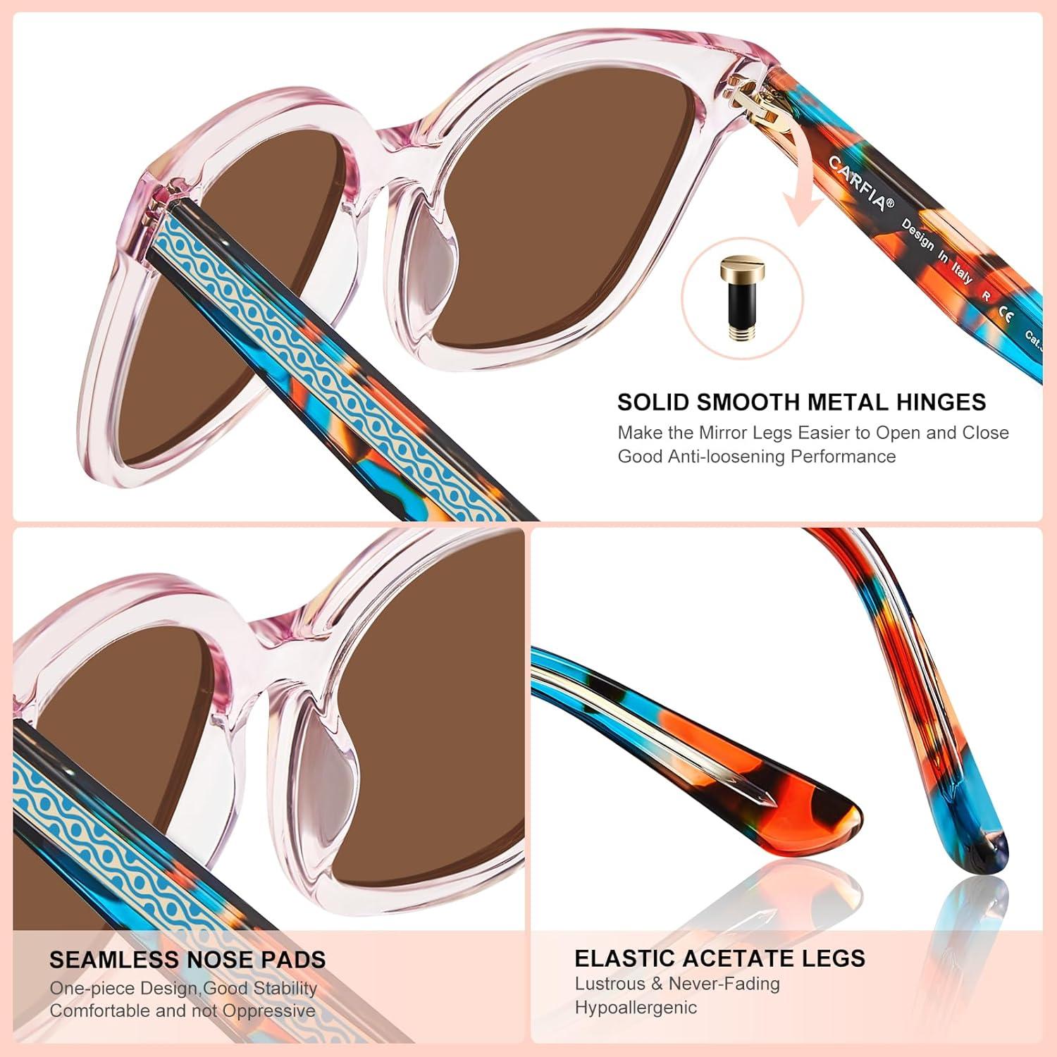 Be the first to review “CARFIA Cat Eye Acetate Polarized Sunglasses for Women UV Protection, Retro Ladies Eyewears with Embossed Pattern Wire Core(4. Light Pink Frame + Pink Mirrored)”