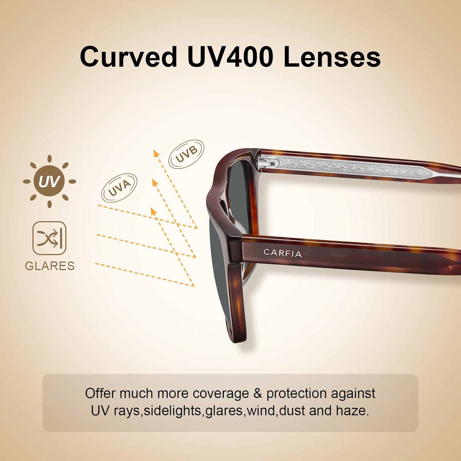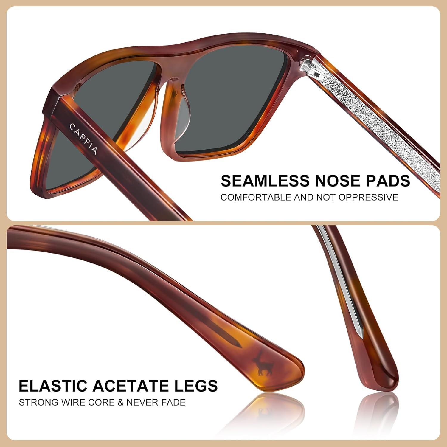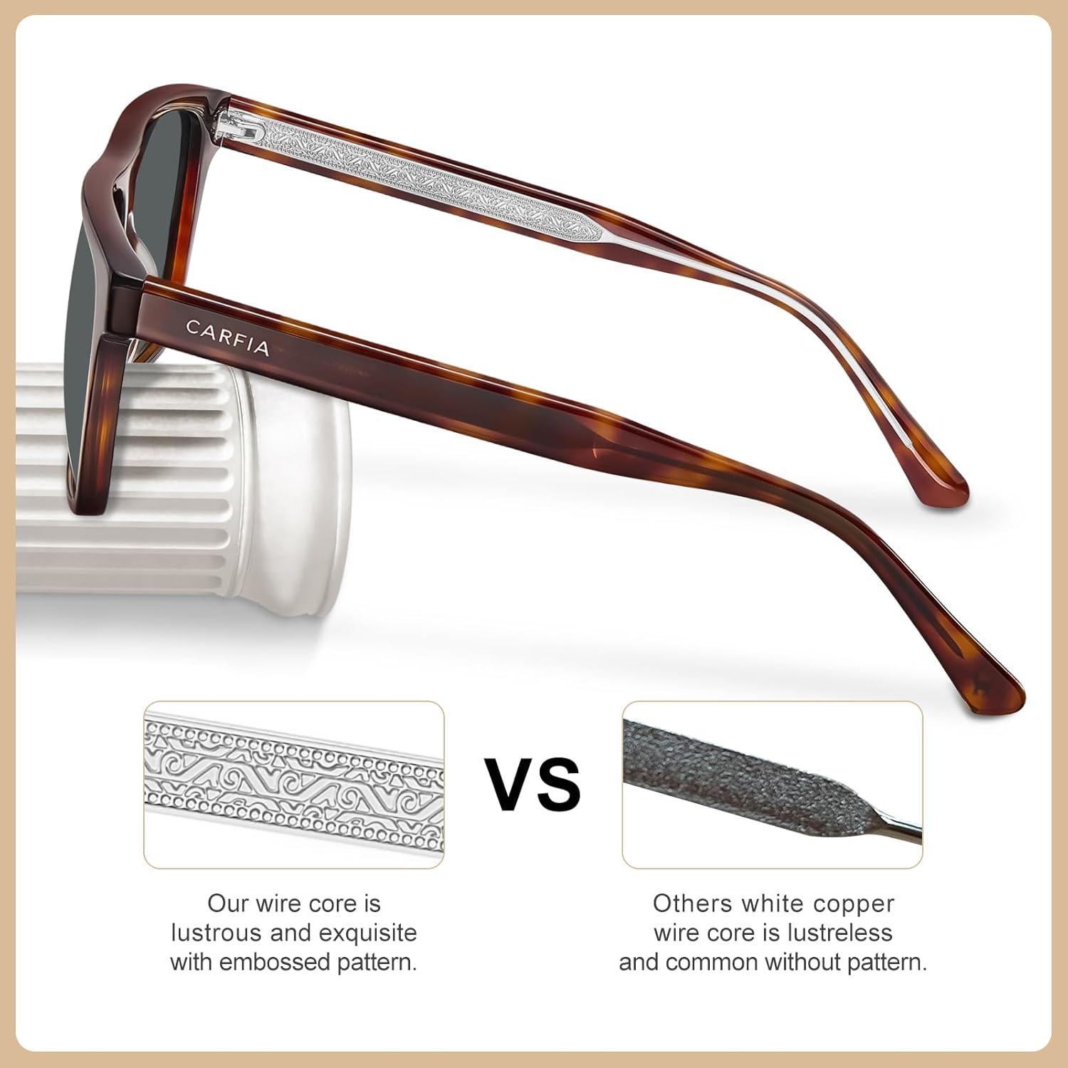CARFIA Curved Acetate Polarized Sunglasses for Men UV Protection, Cool Retro Driving Eyewears with Embossed Pattern Wire Core(1. Brown Tortoise Frame Grey Lens)