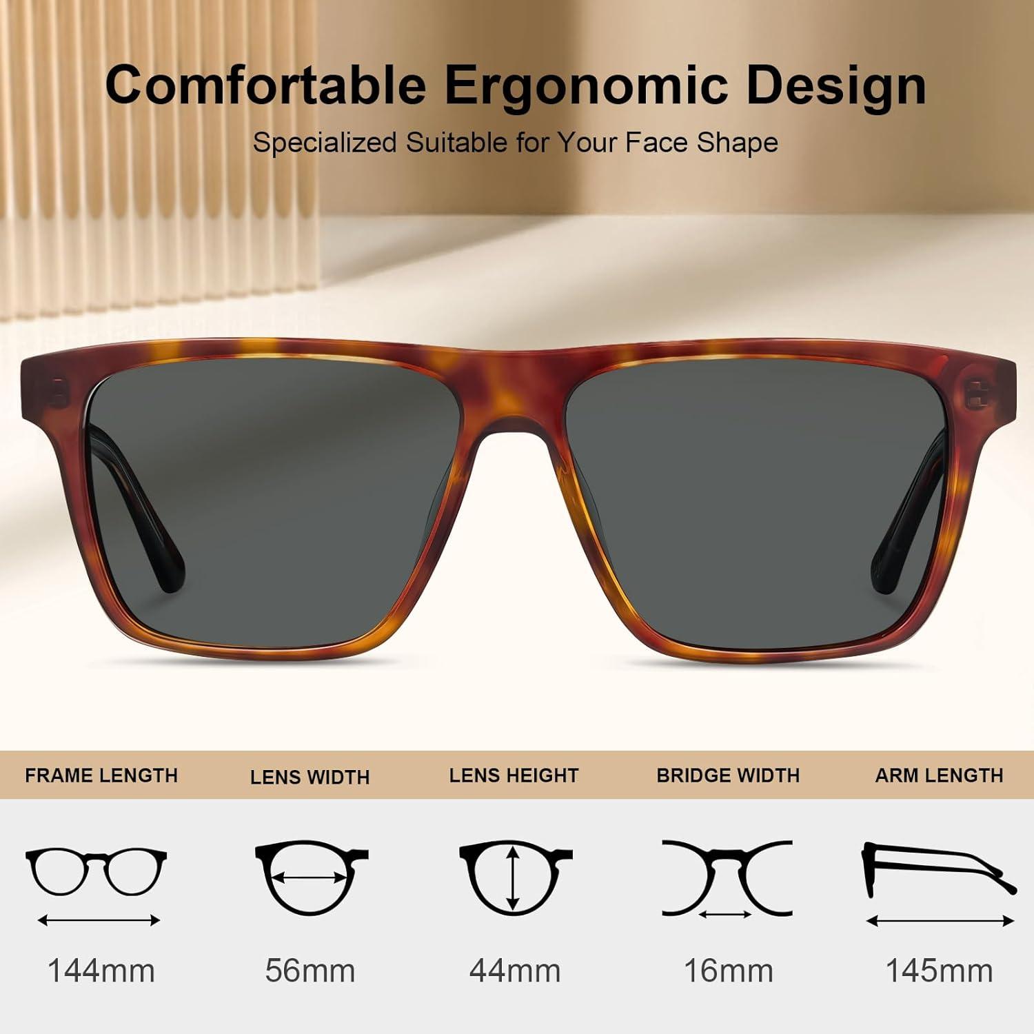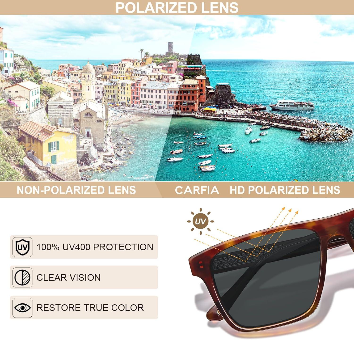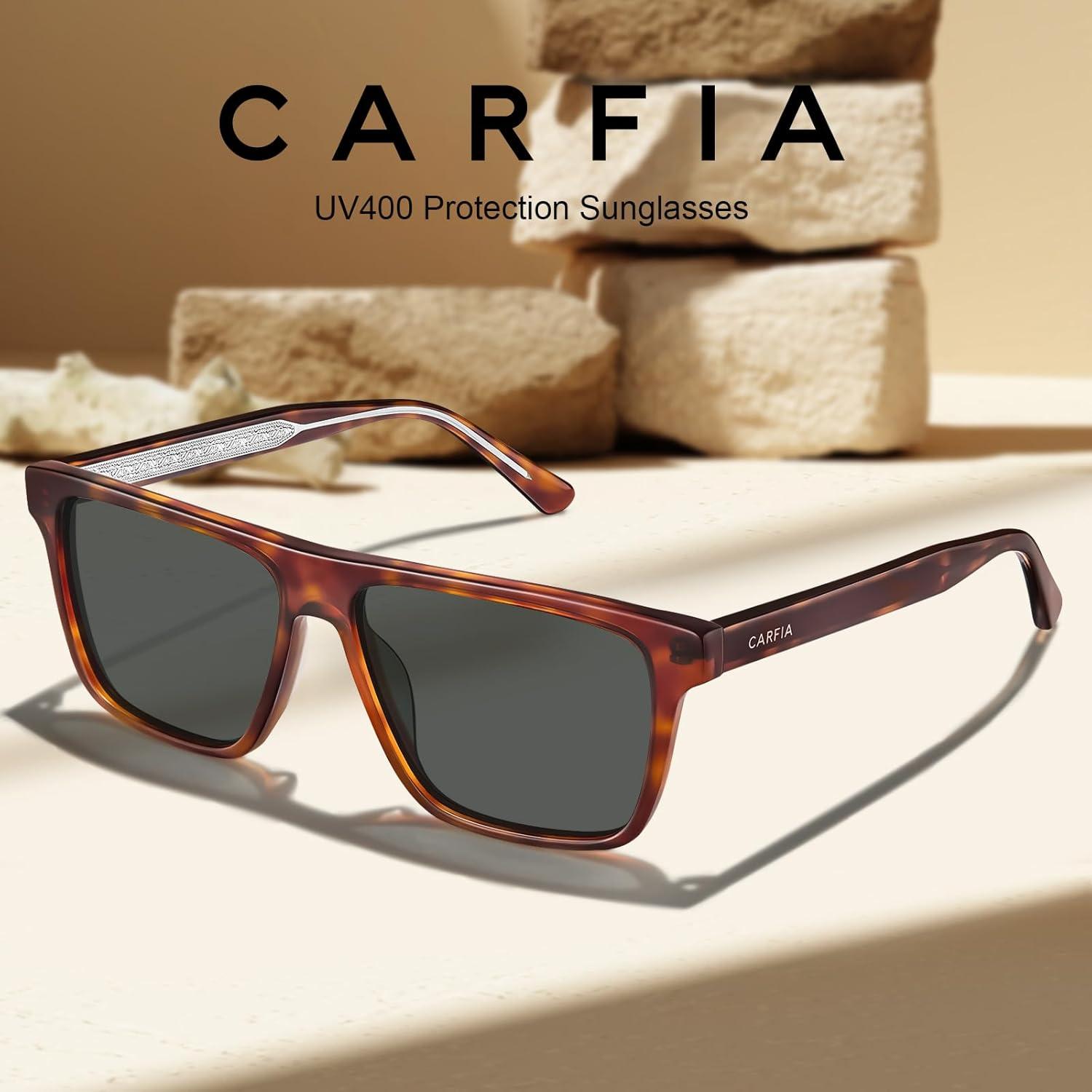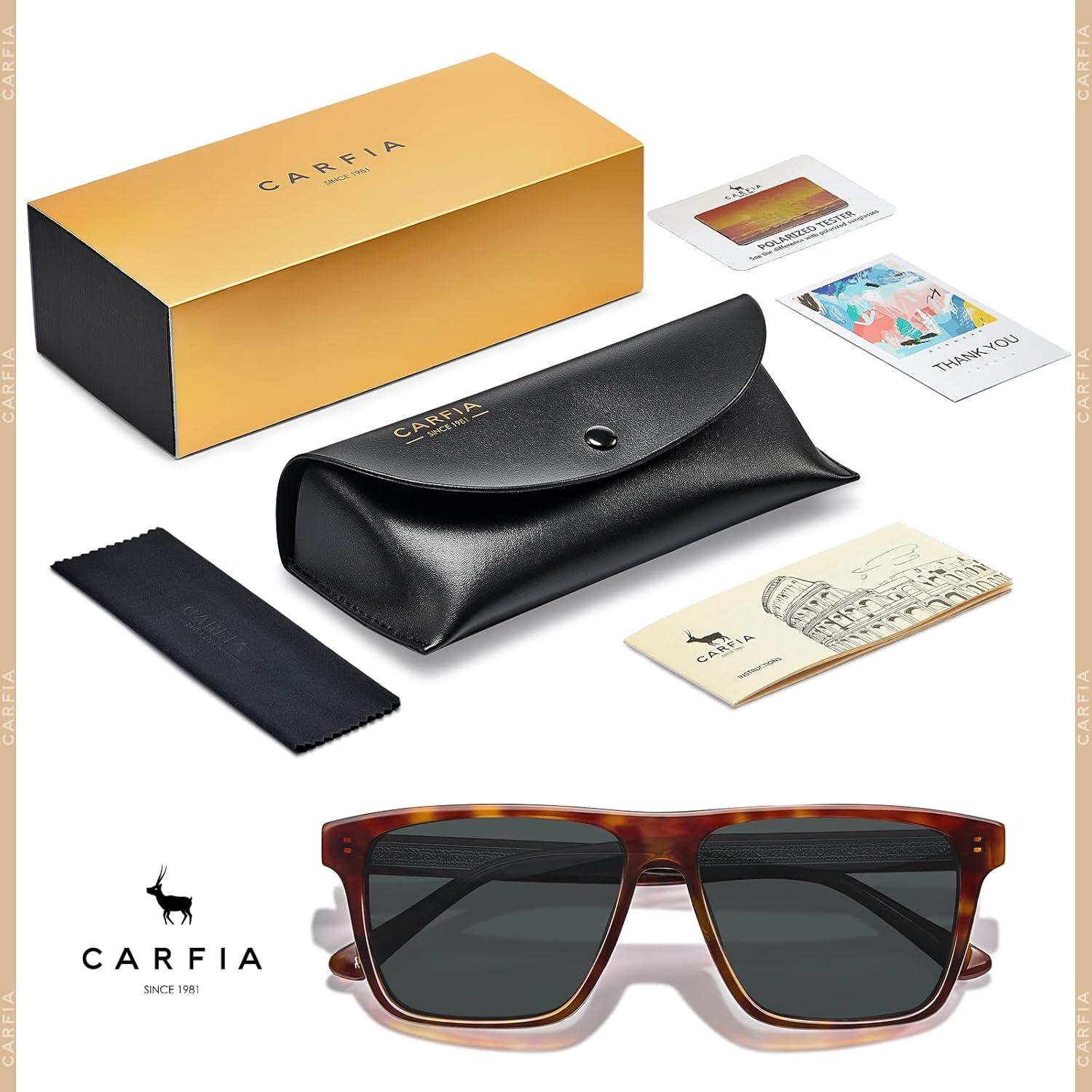 CARFIA Curved Acetate Polarized Sunglasses for Men UV Protection, Cool Retro Driving Eyewears with Embossed Pattern Wire Core(1. Brown Tortoise Frame Grey Lens)