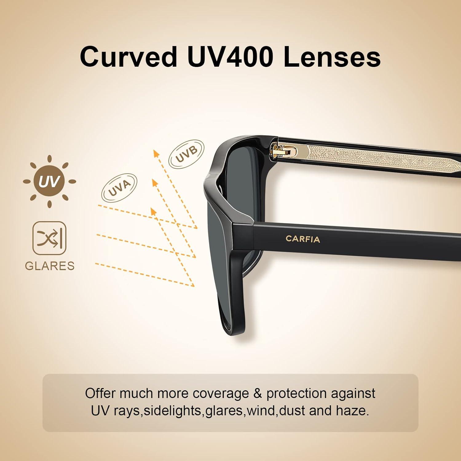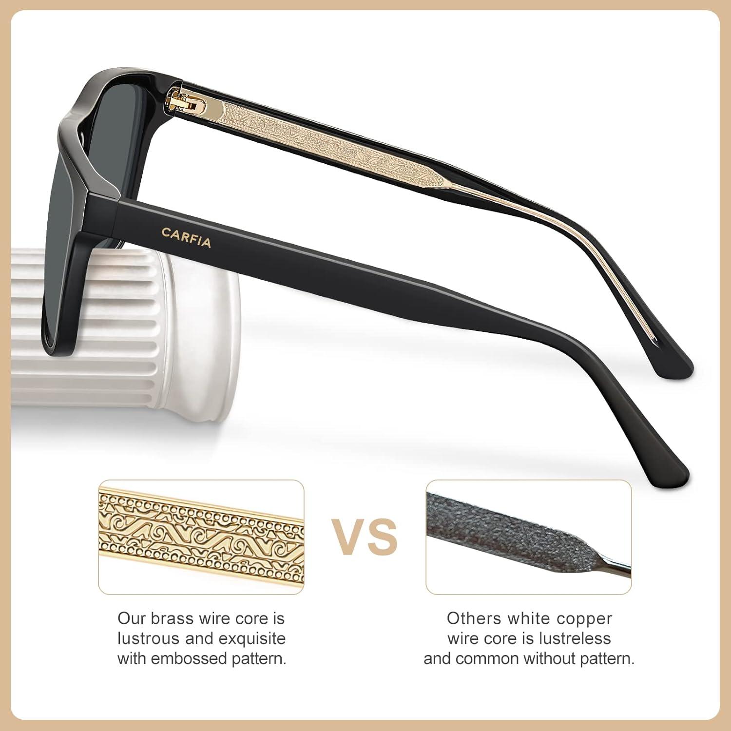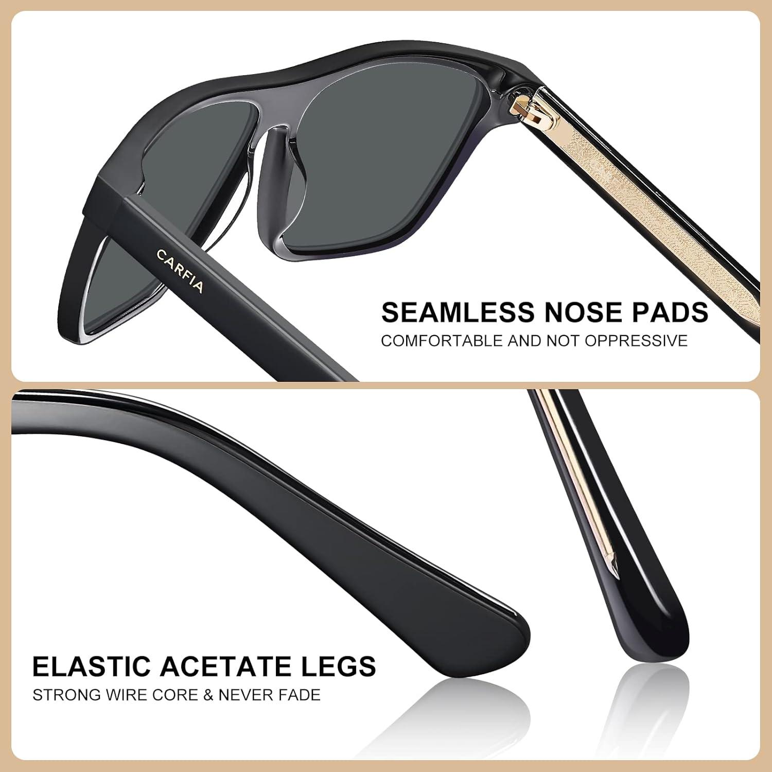 CARFIA Curved Acetate Polarized Sunglasses for Men UV Protection, Cool Retro Driving Eyewears with Embossed Pattern Wire Core(3. Black Frame Grey Lens)