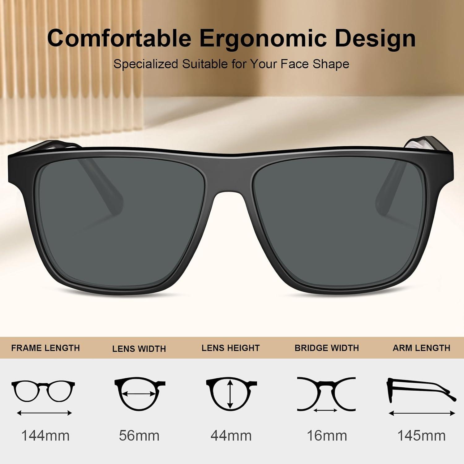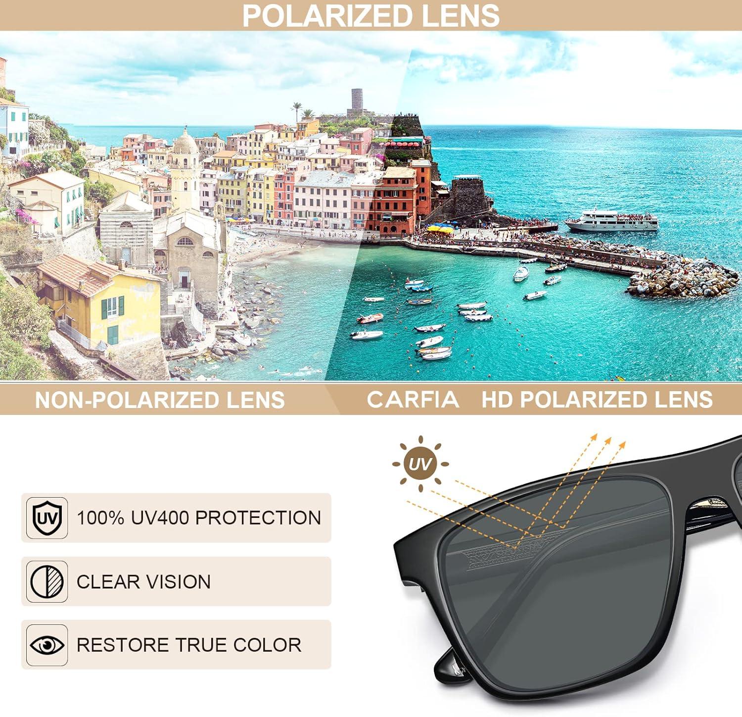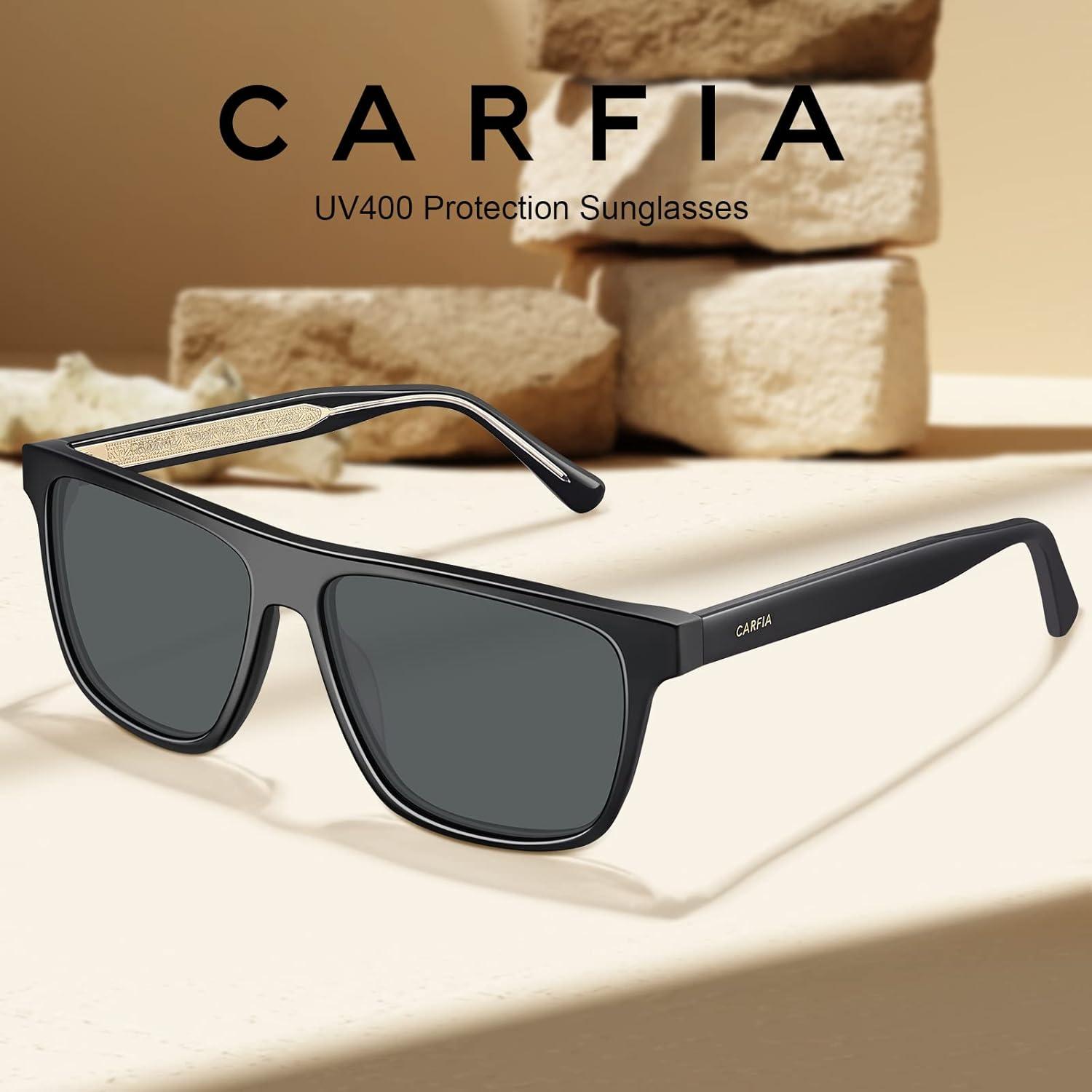 CARFIA Curved Acetate Polarized Sunglasses for Men UV Protection, Cool Retro Driving Eyewears with Embossed Pattern Wire Core(3. Black Frame Grey Lens)