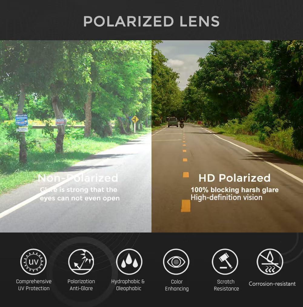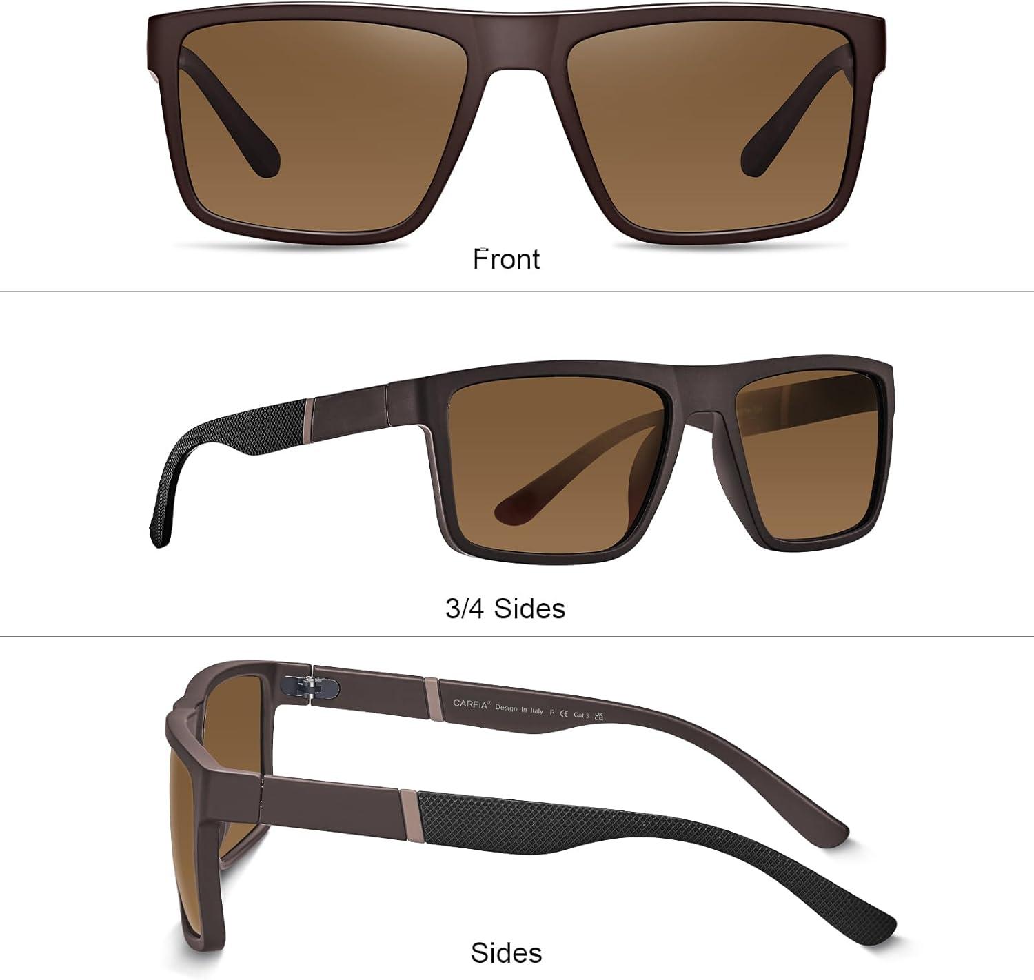CARFIA Grid Temple Polarized Sunglasses for Men UV Protection Sturdy TR90 Frame Cool Square Sun Glasses(Matte Brown Frame Brown Lens)