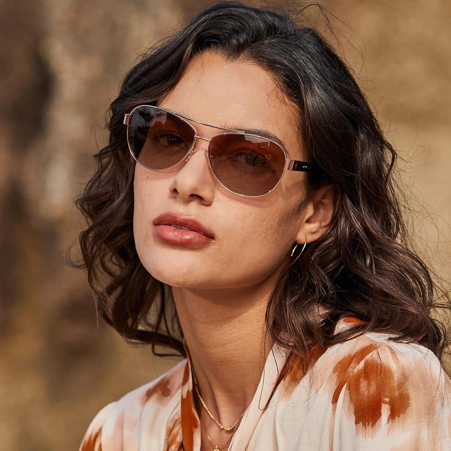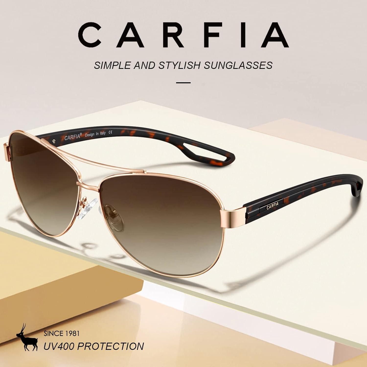 CARFIA Lightweight Retro Pilot Sunglasses for Women Polarized UV Protection, Trendy Outdoor Driving Lady Sunnies Metal Frame(1. Polished Rose Gold Frame Frame Gradient Brown Lens)