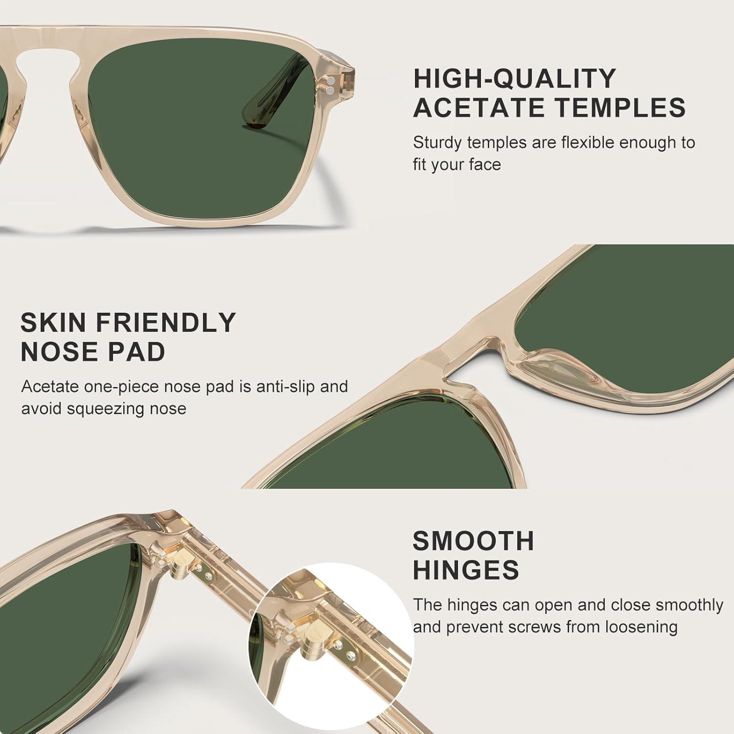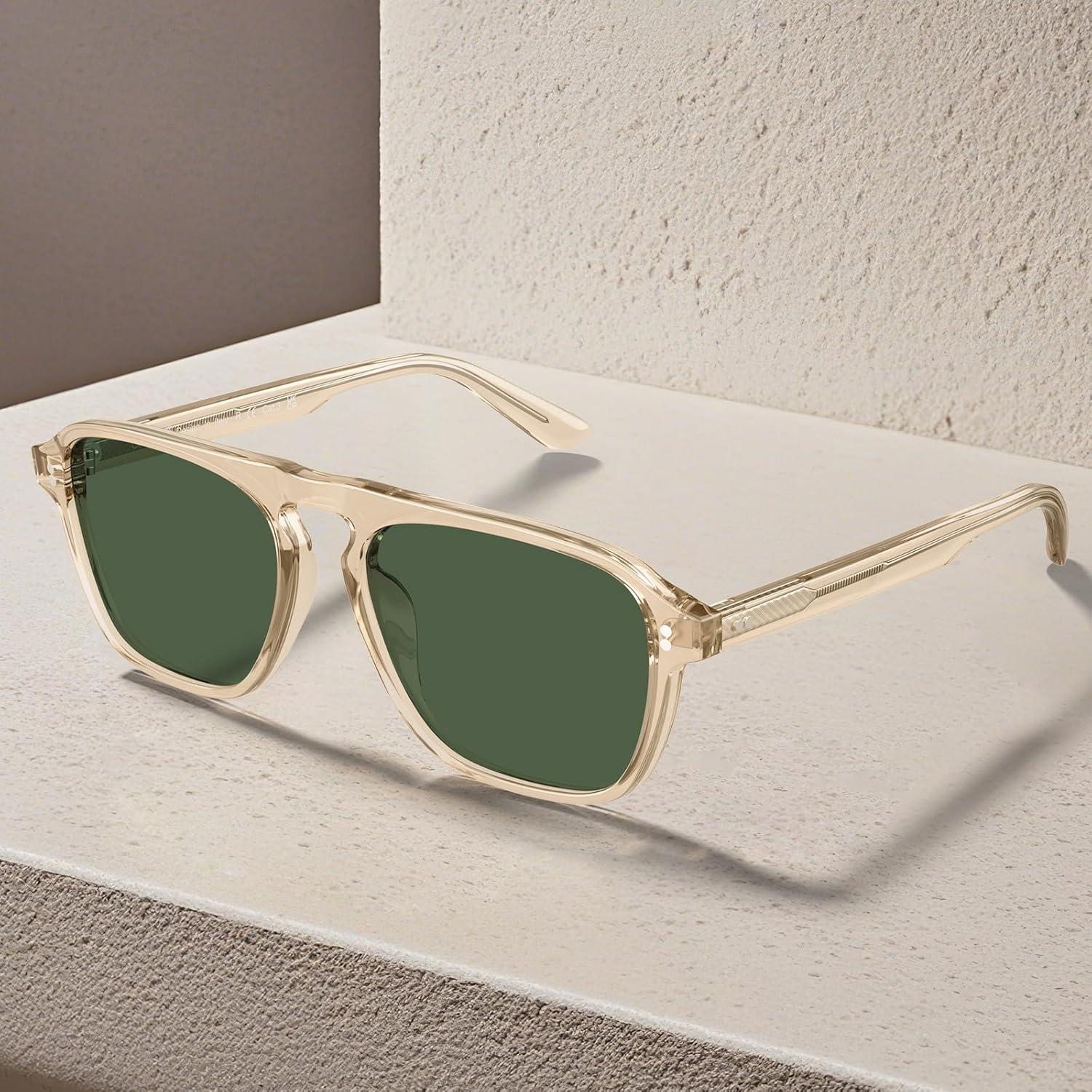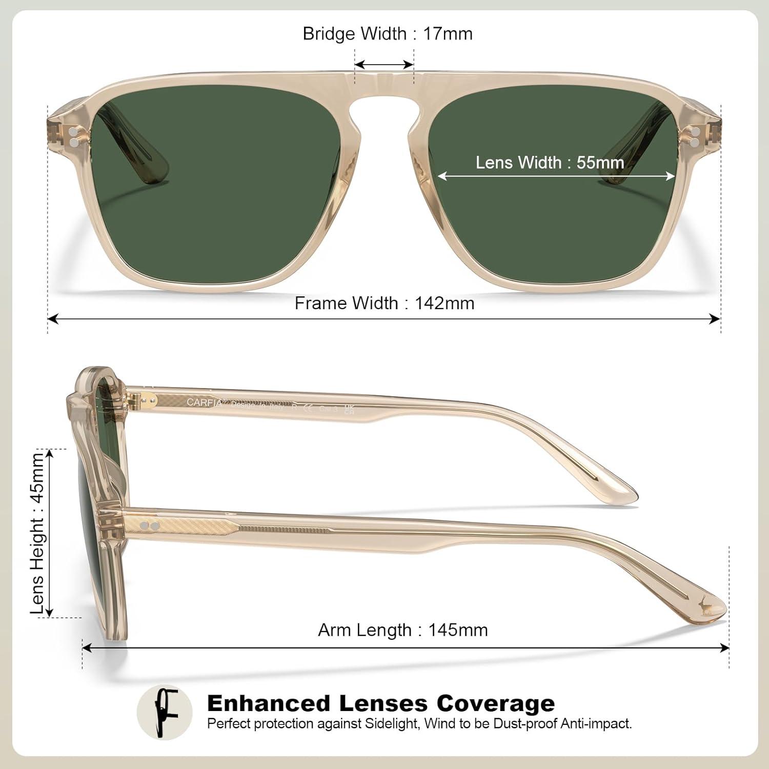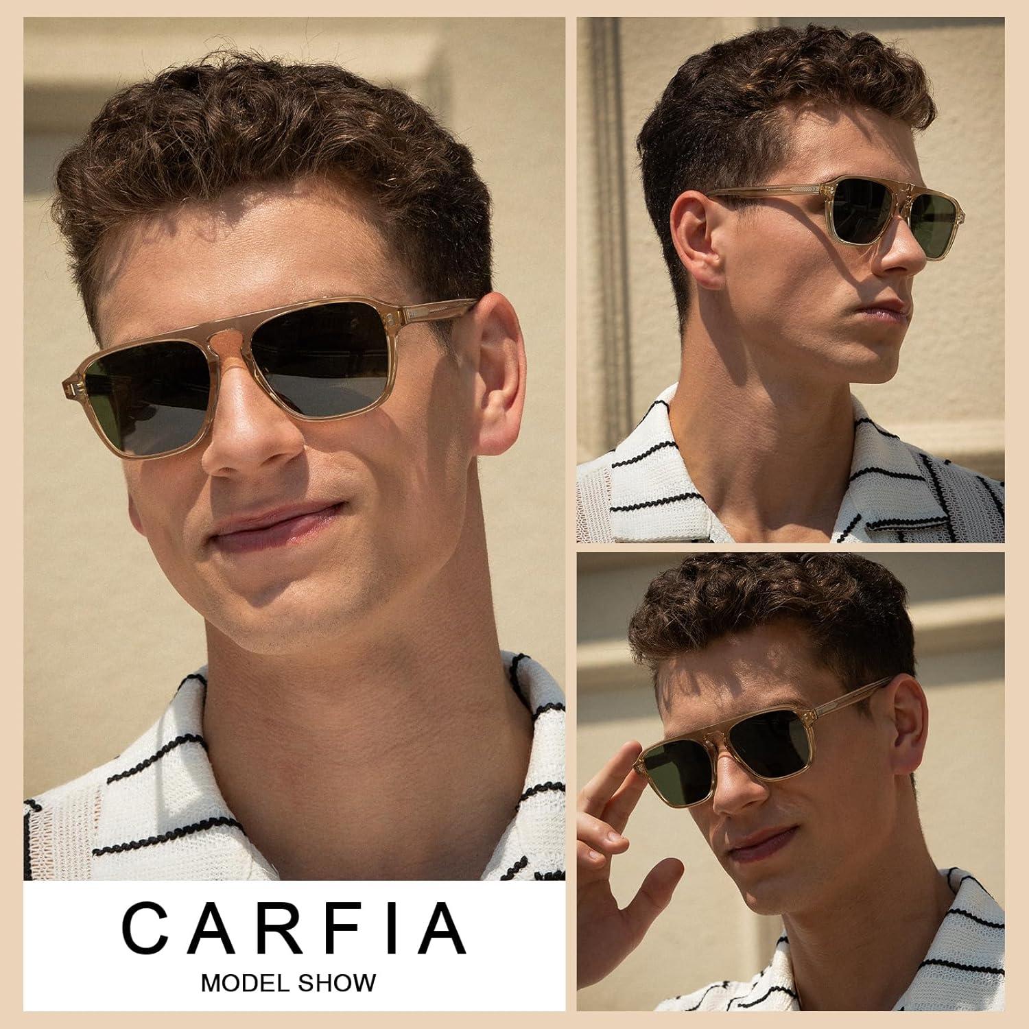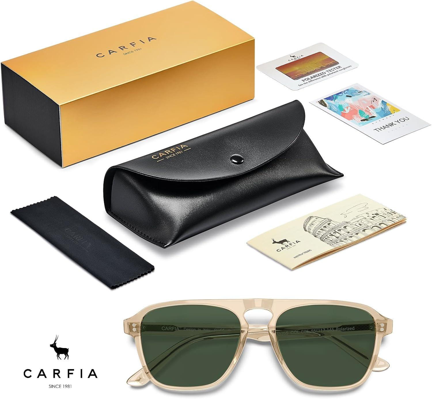 CARFIA Polarized Sunglasses for Men UV400 Protection – Pilot Design Acetate Sun Glasses for Driving Fishing Outdoor CA5355(6. Transparent Light Brown Frame Green Lens)
