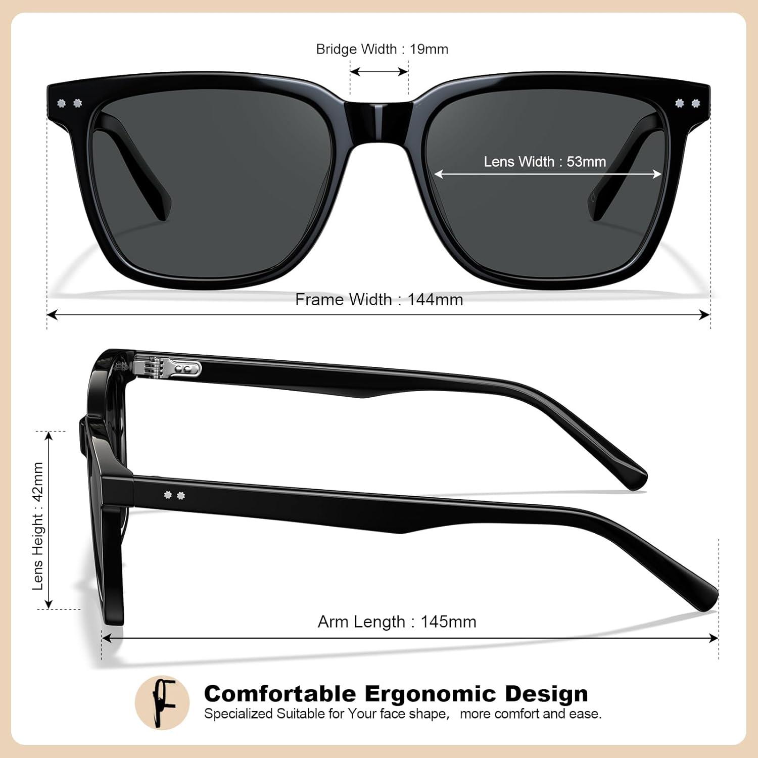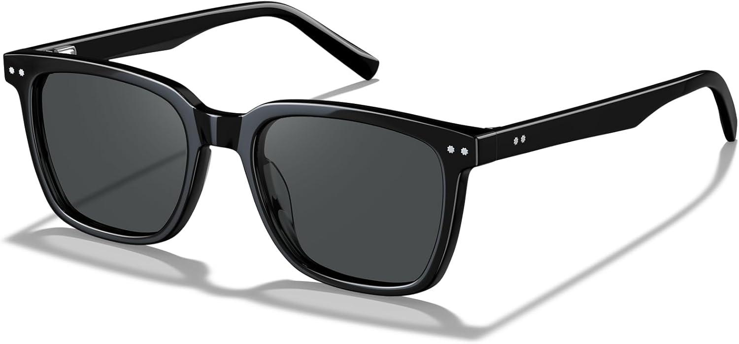 CARFIA Retro Acetate Polarized Sunglasses for Men UV Protection Square Classic Eyewear for Driving Outdoor(1. Black Frame + Gray Lenses)