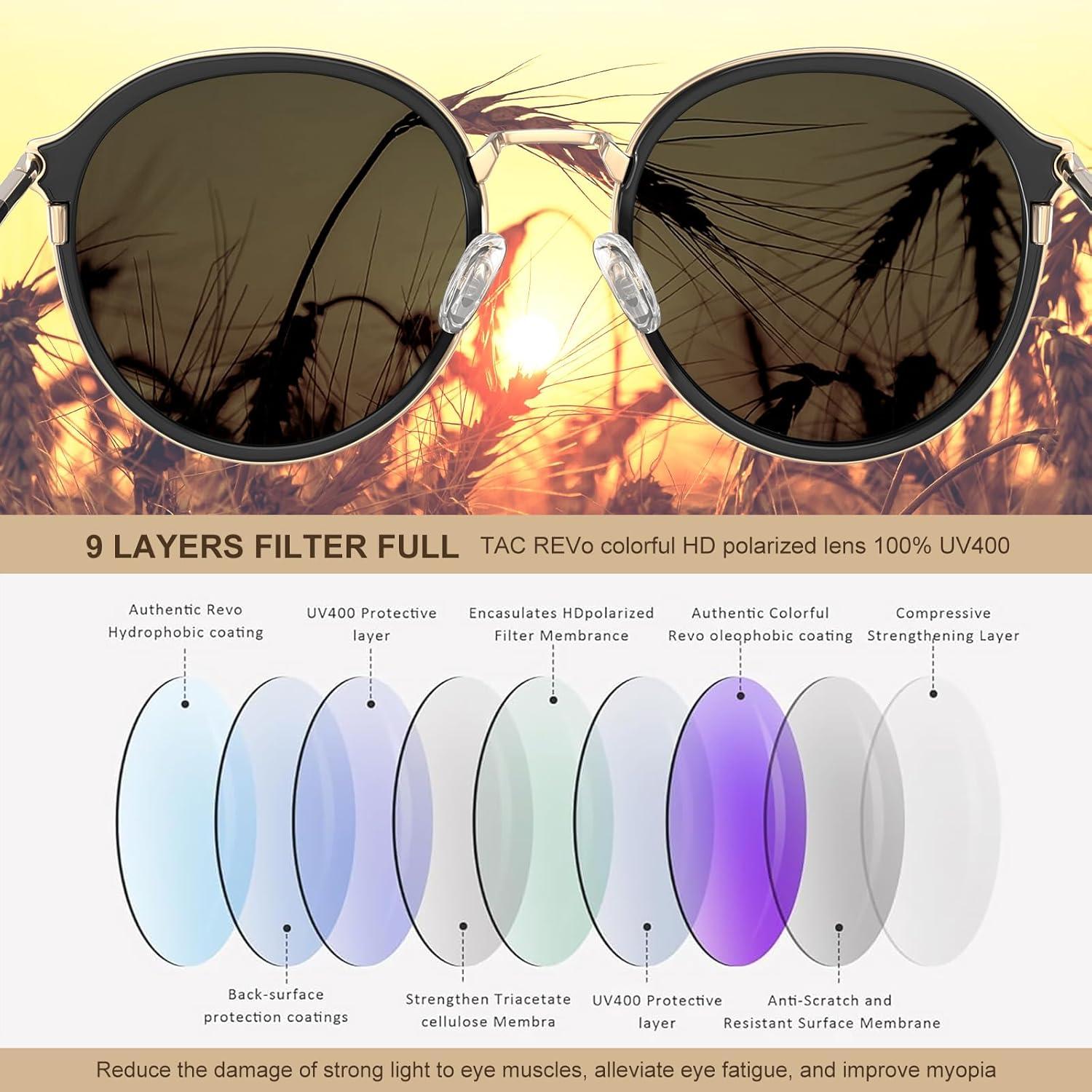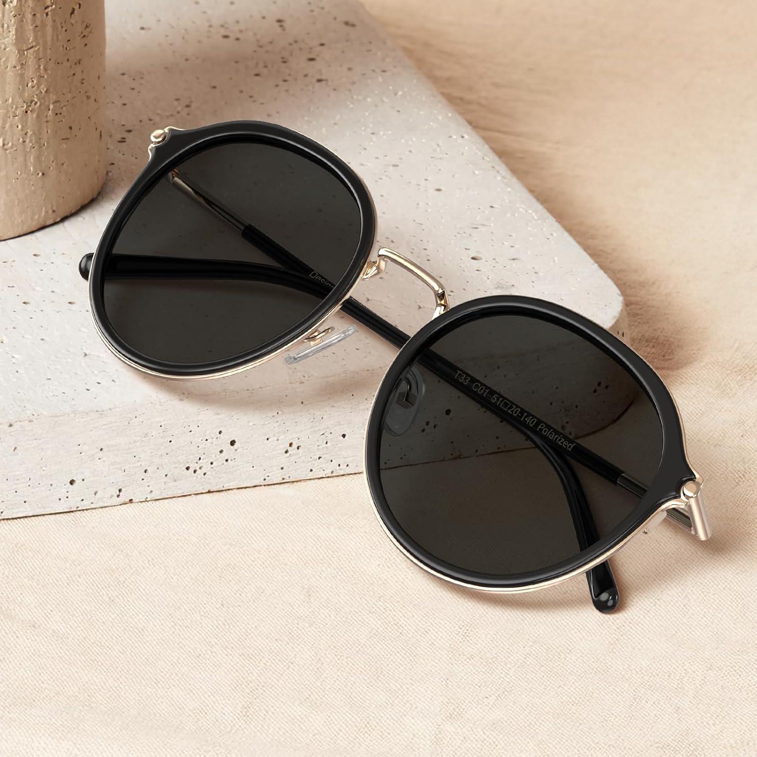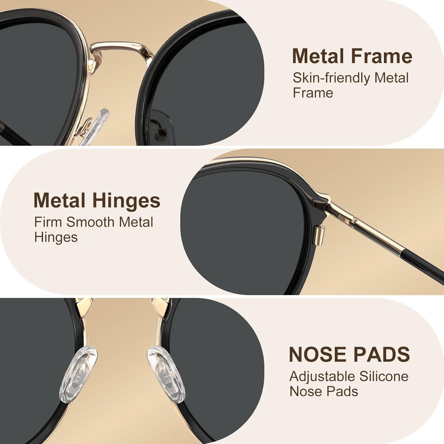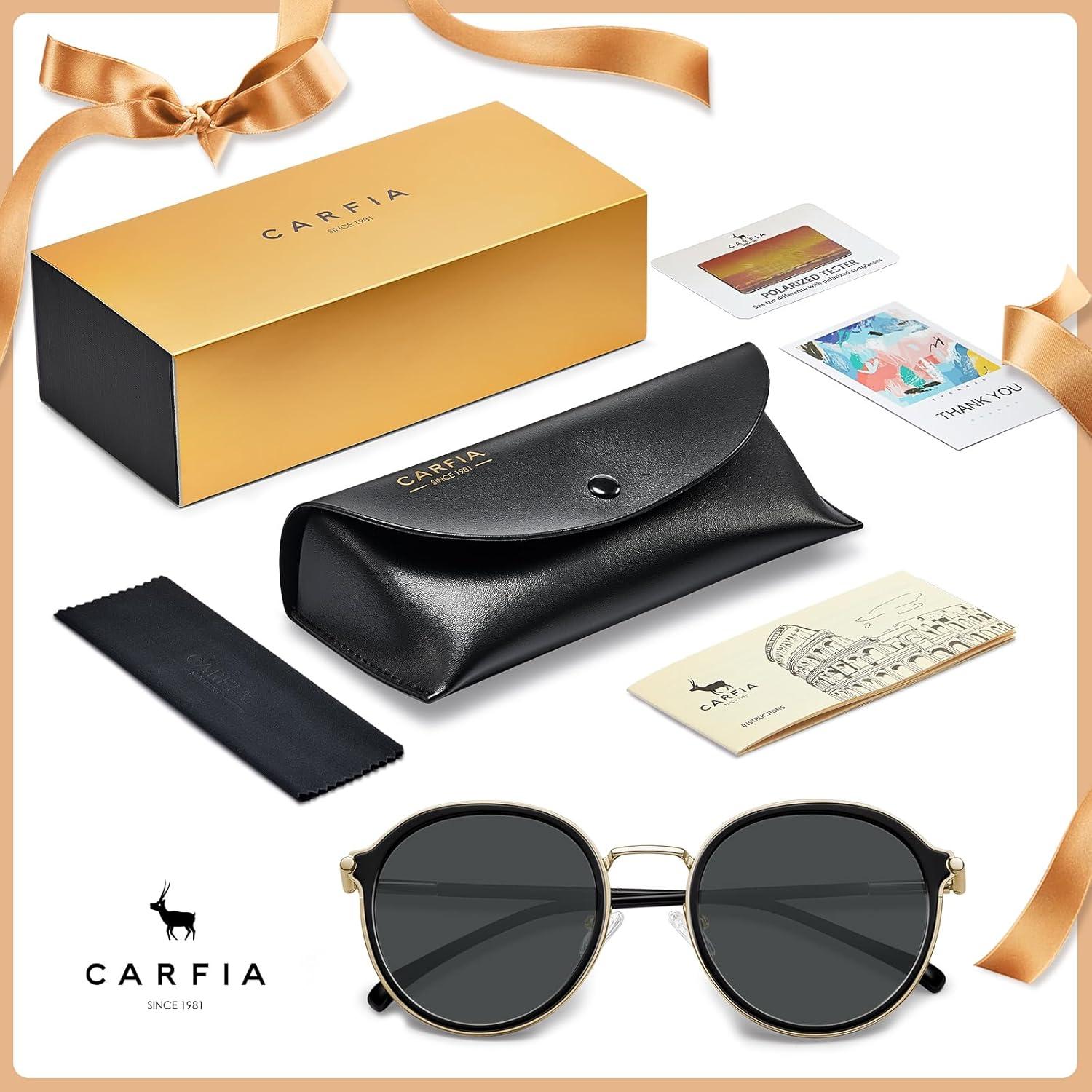 Be the first to review “CARFIA Retro Acetate Polarized Sunglasses for Women UV Protection, Fashion Metal Brow Ladies Shades Eyewears Round Sunnies(1. Black Frame and Grey Lens)”
