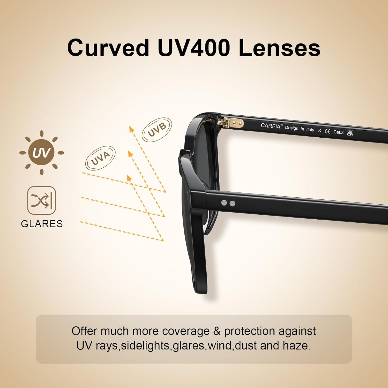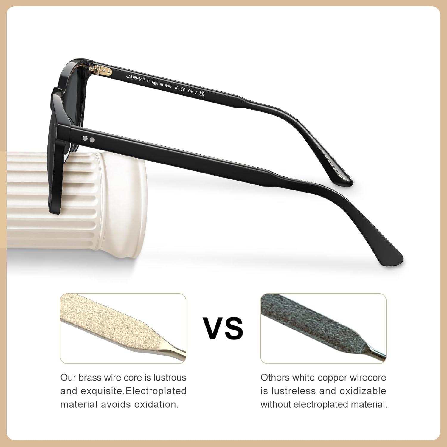 CARFIA Retro Cool Acetate Sunglasses for Men Polarized UV Protection, Trendy Square Male Sunnies Outdoor Driving Eyewears(2. Black Frame Grey Lens)