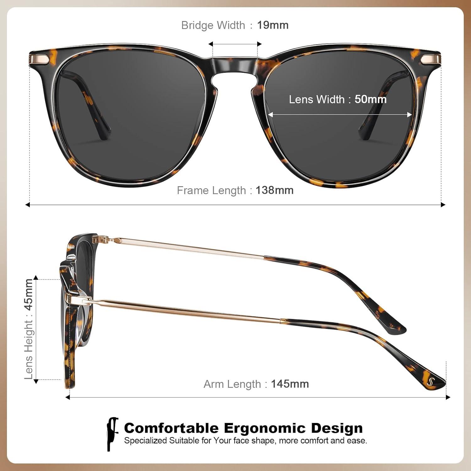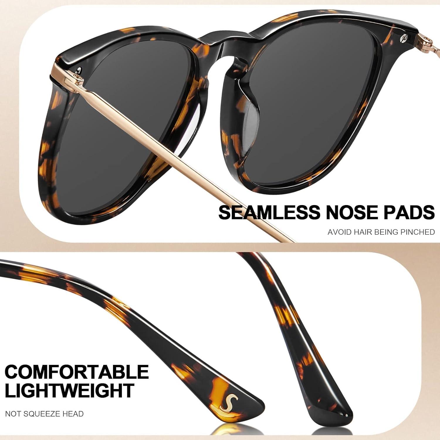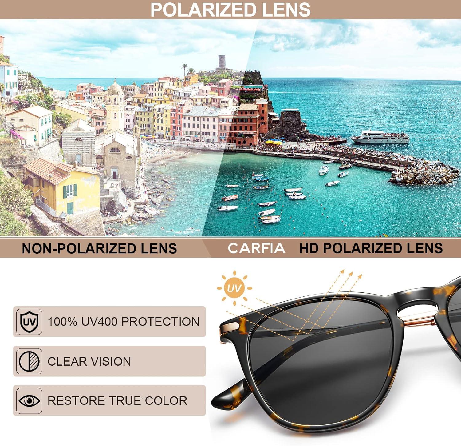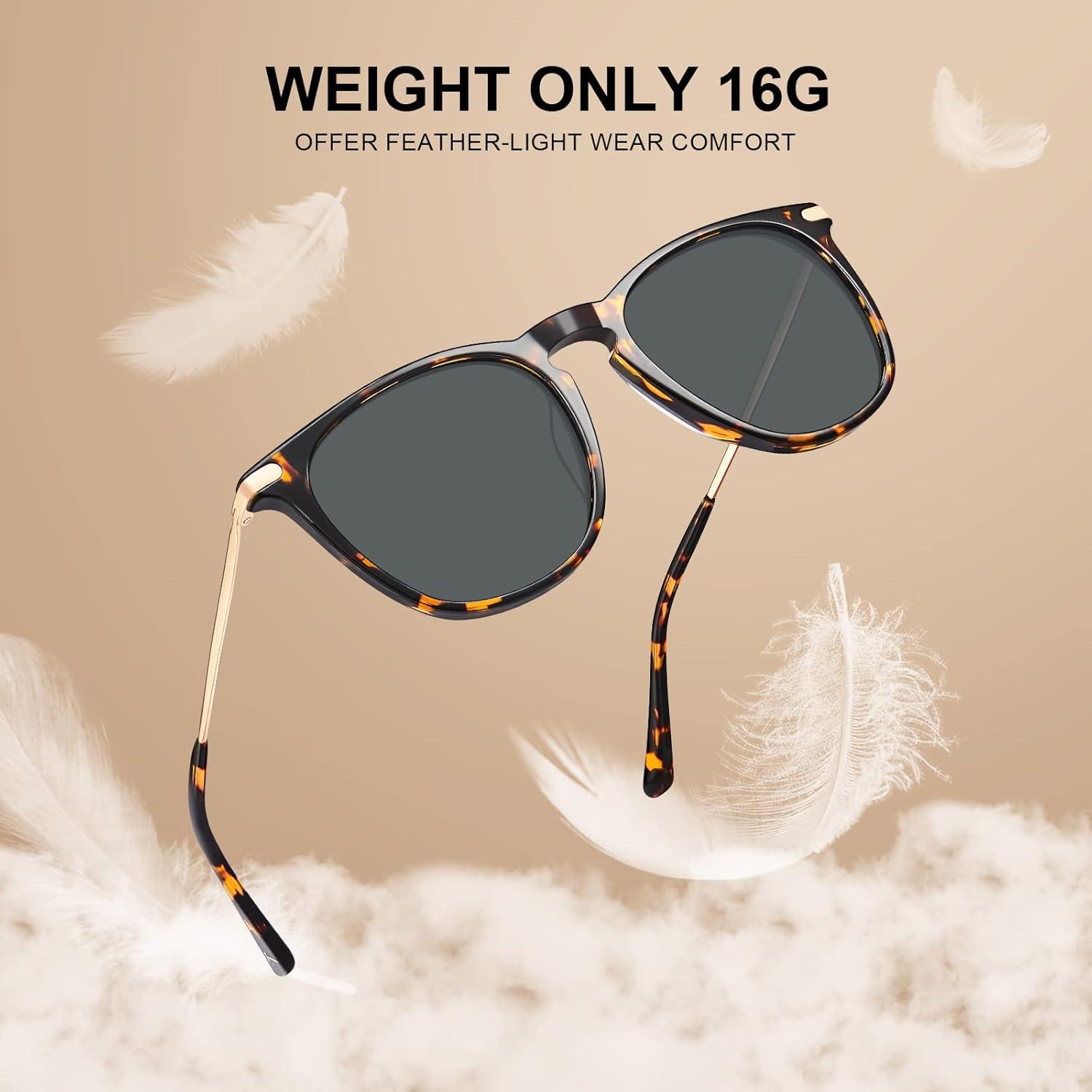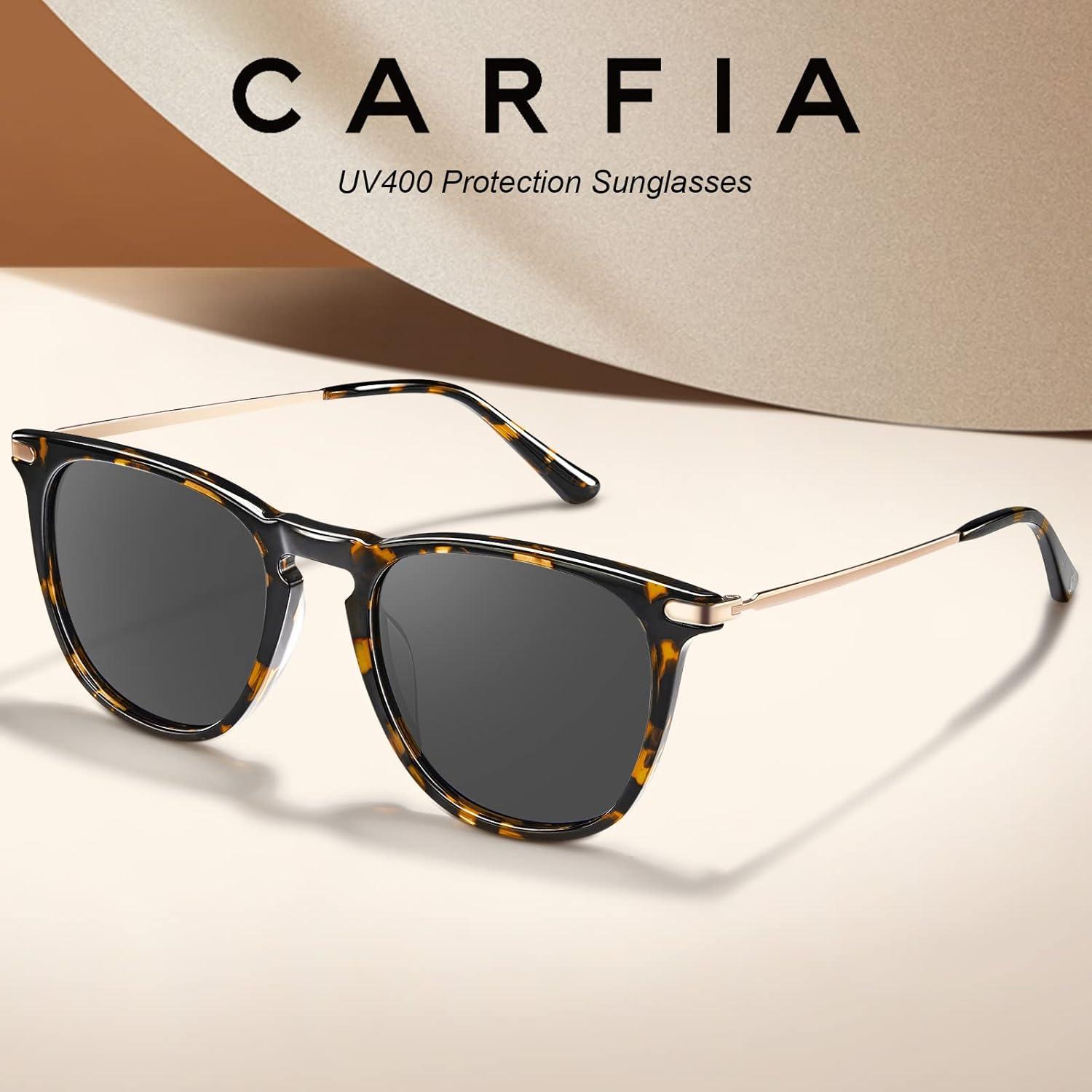 CARFIA Retro Lightweight Polarized Sunglasses for Women UV Protection, Square Ladies Sunnies Outdoor Driving Eyewears CA32R(1. Tortoise Frame Grey Lens)