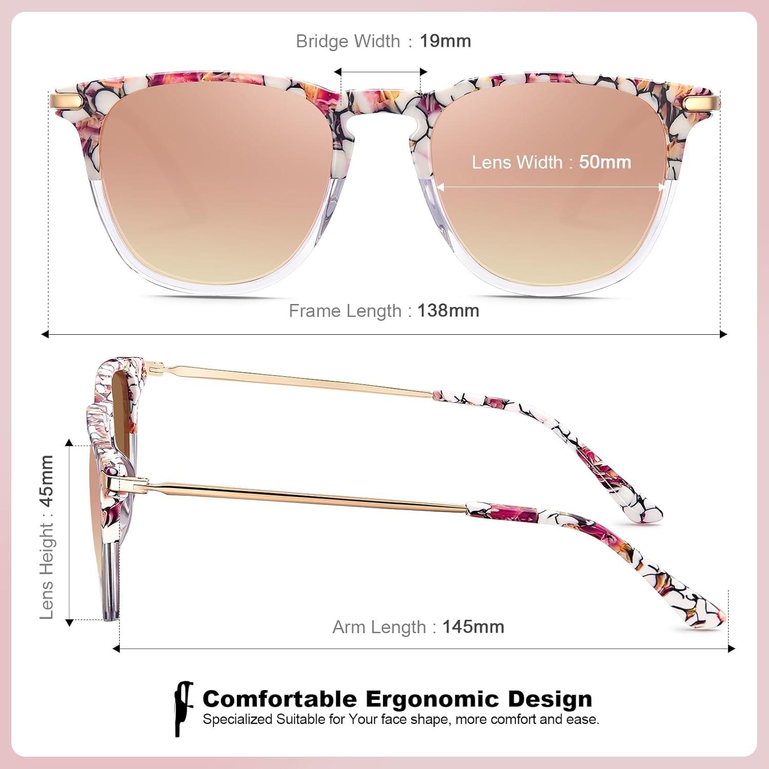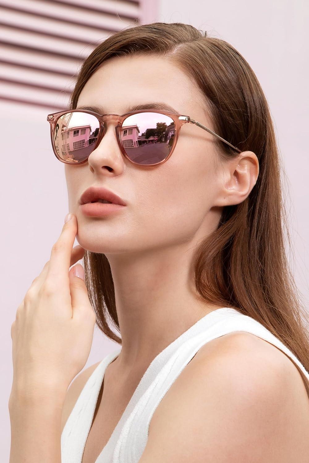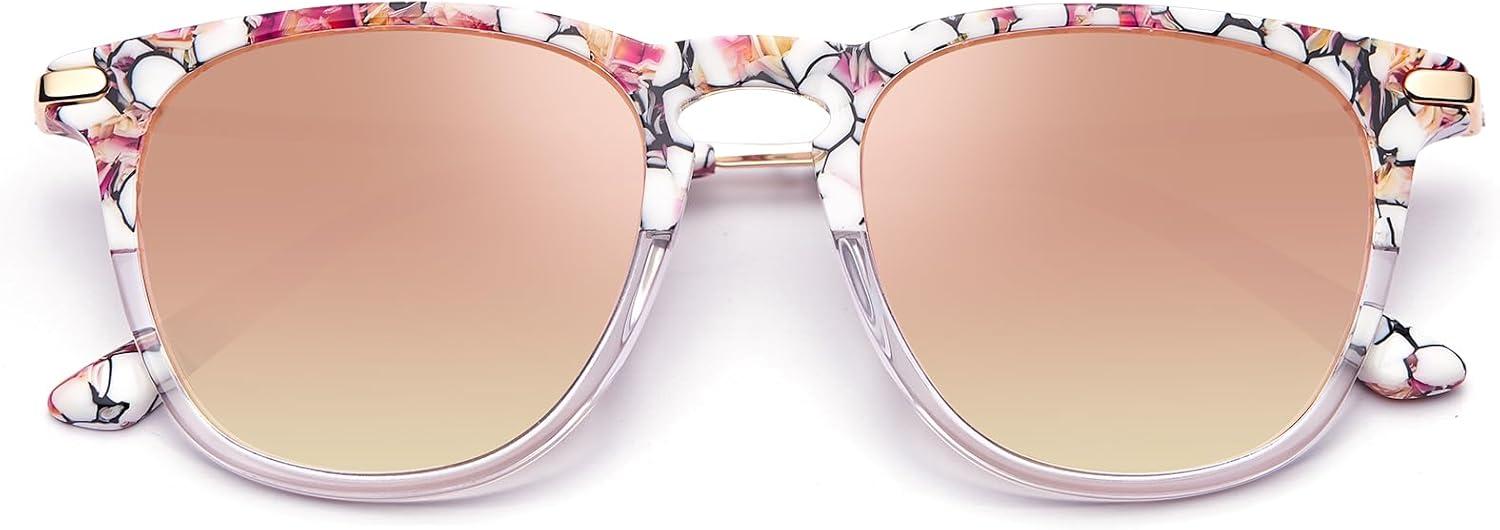 CARFIA Retro Lightweight Polarized Sunglasses for Women UV Protection, Square Ladies Sunnies Outdoor Driving Eyewears CA32R(4-0. Pink White Tortoise Frame Pink Mirrored)
