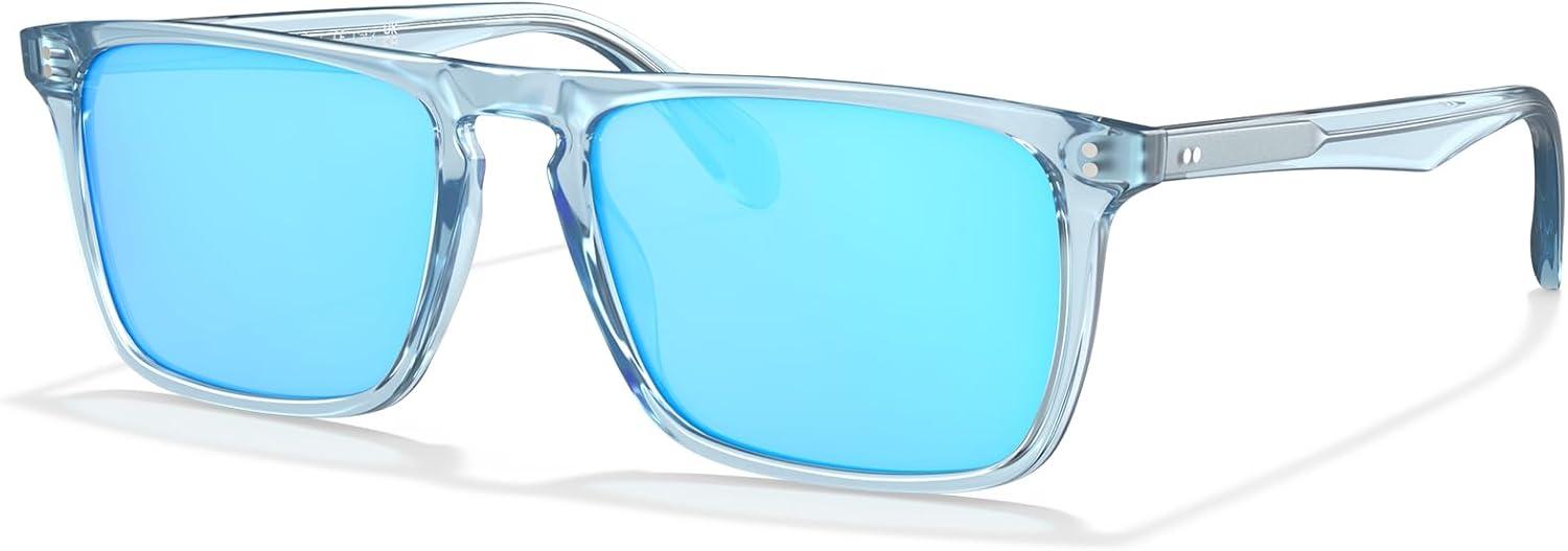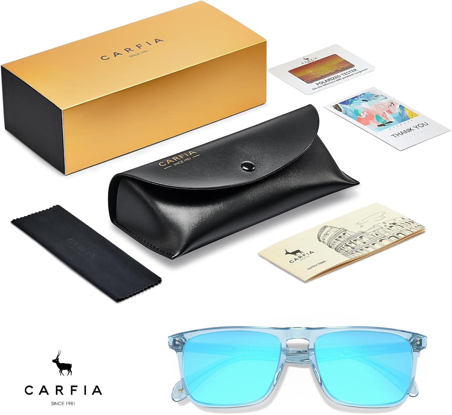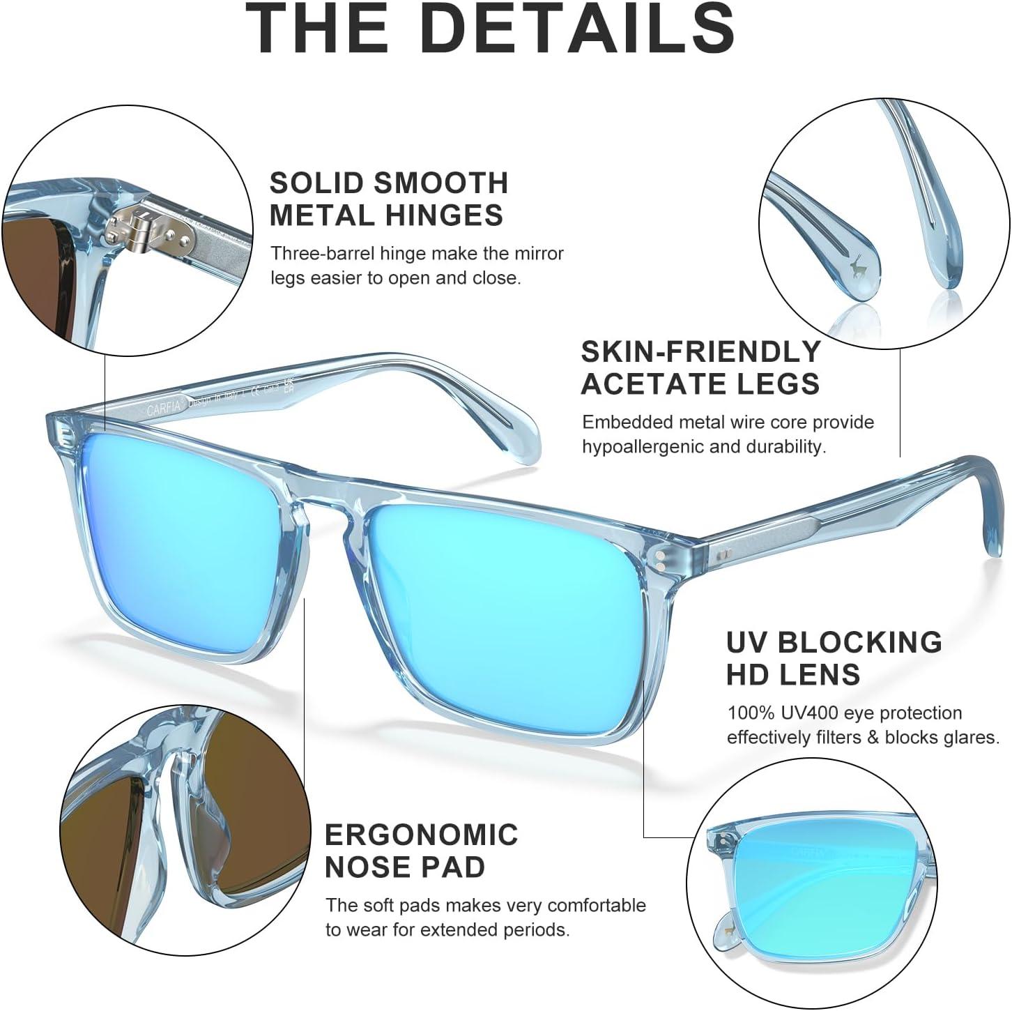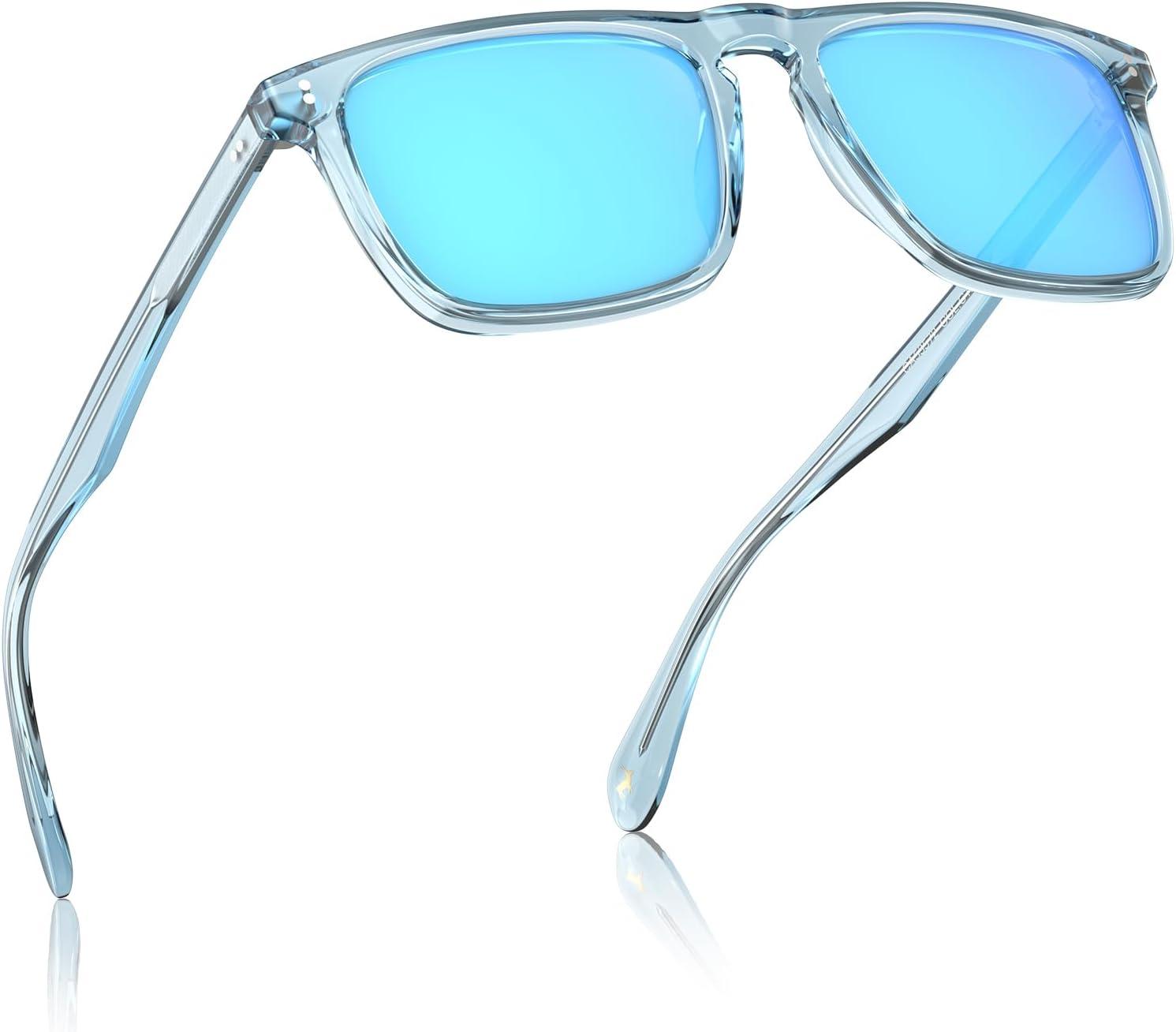 CARFIA Retro Polarized Sunglasses for Men UV Protection Hand-crafted Acetate Frame Fashion Cool Sun Glasses CA53572(7-2. Crystal Blue Frame Blue Mirrored)