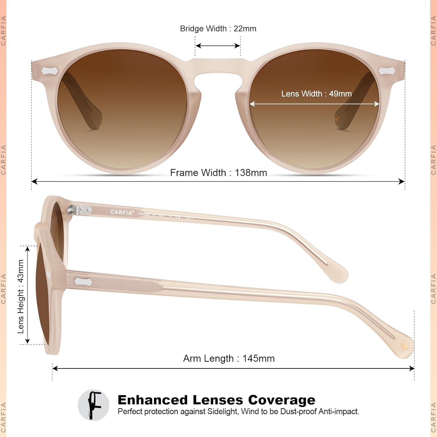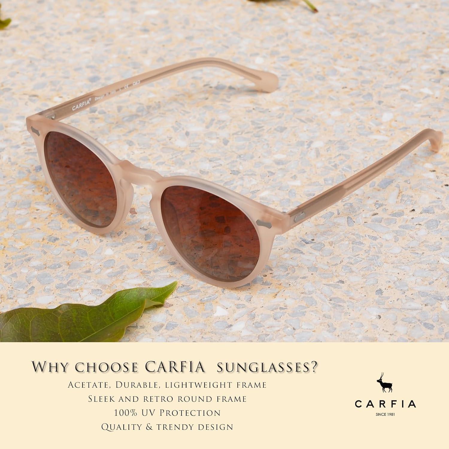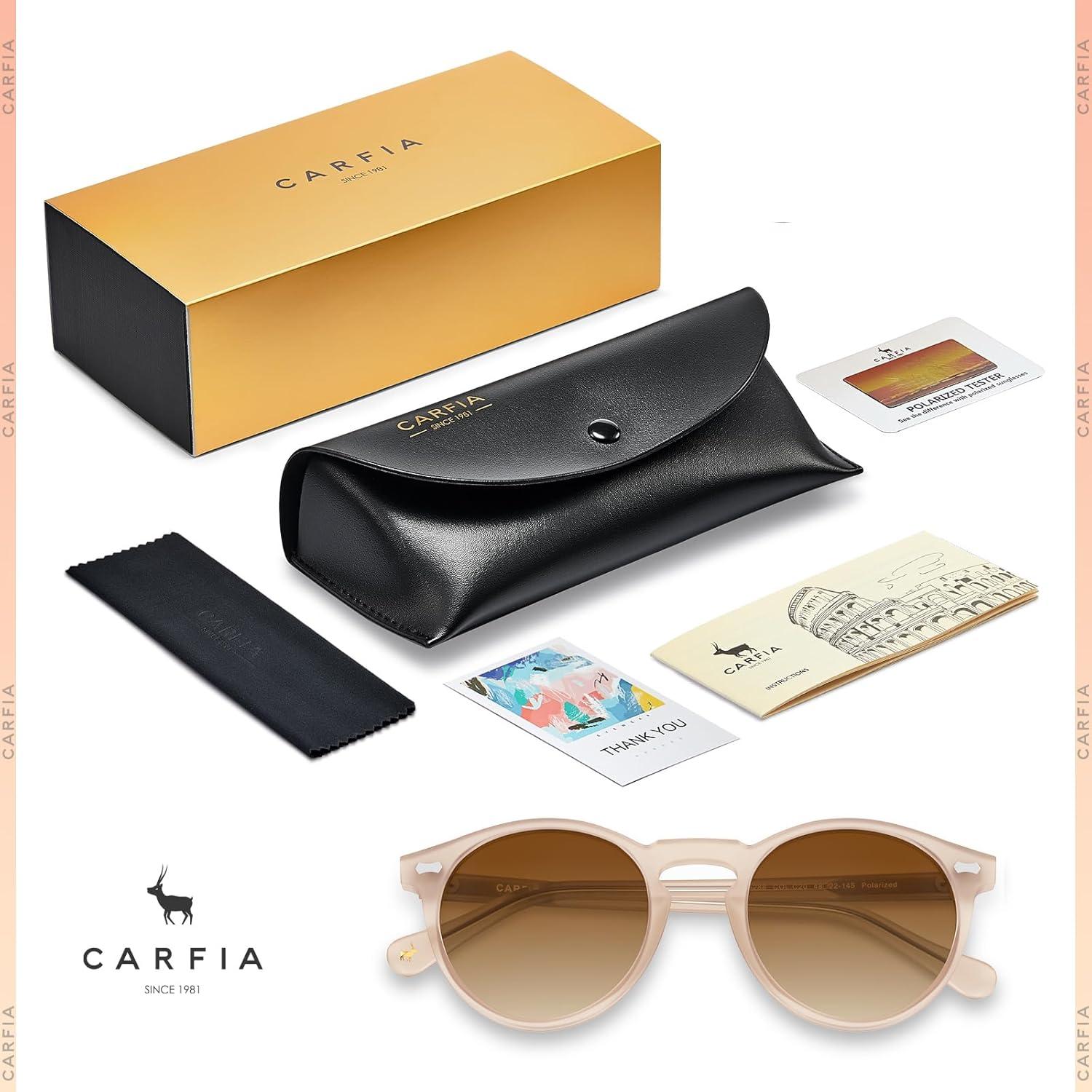 CARFIA Retro Polarized Sunglasses for Women UV Protection Acetate Classic Vintage Style Round Shades(7.matte Pink Frame Brown Lens)