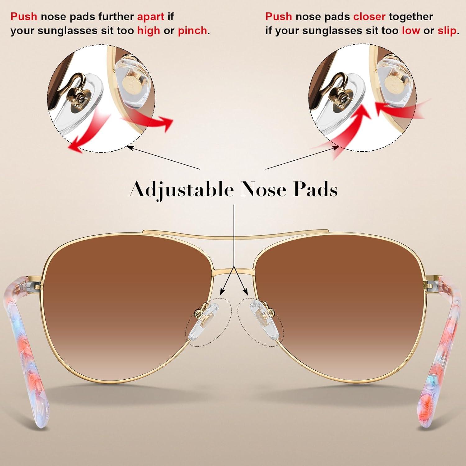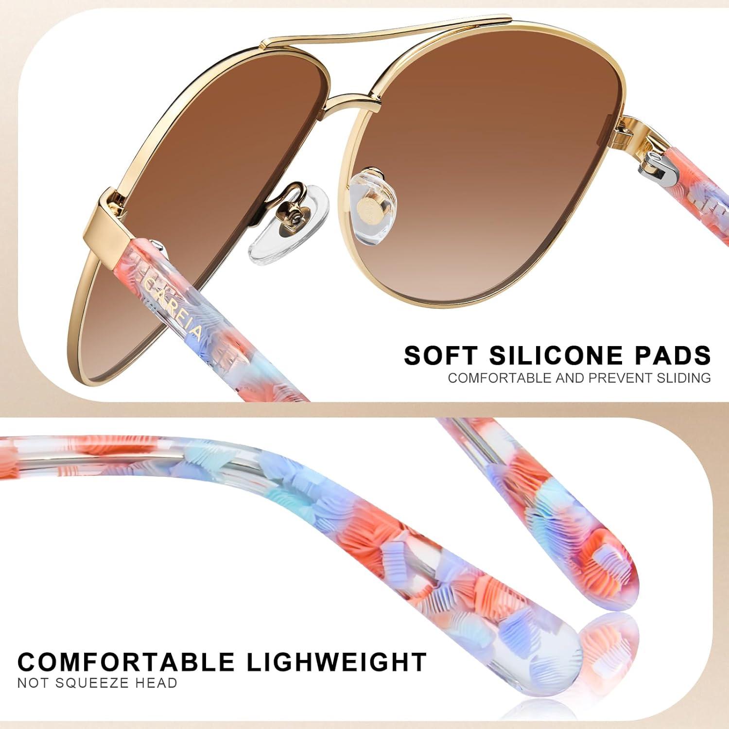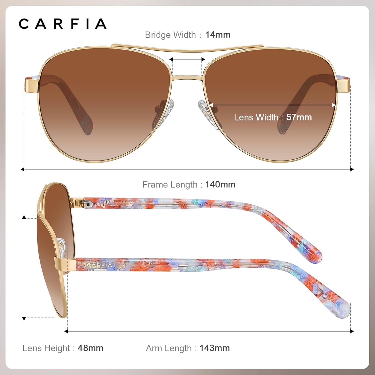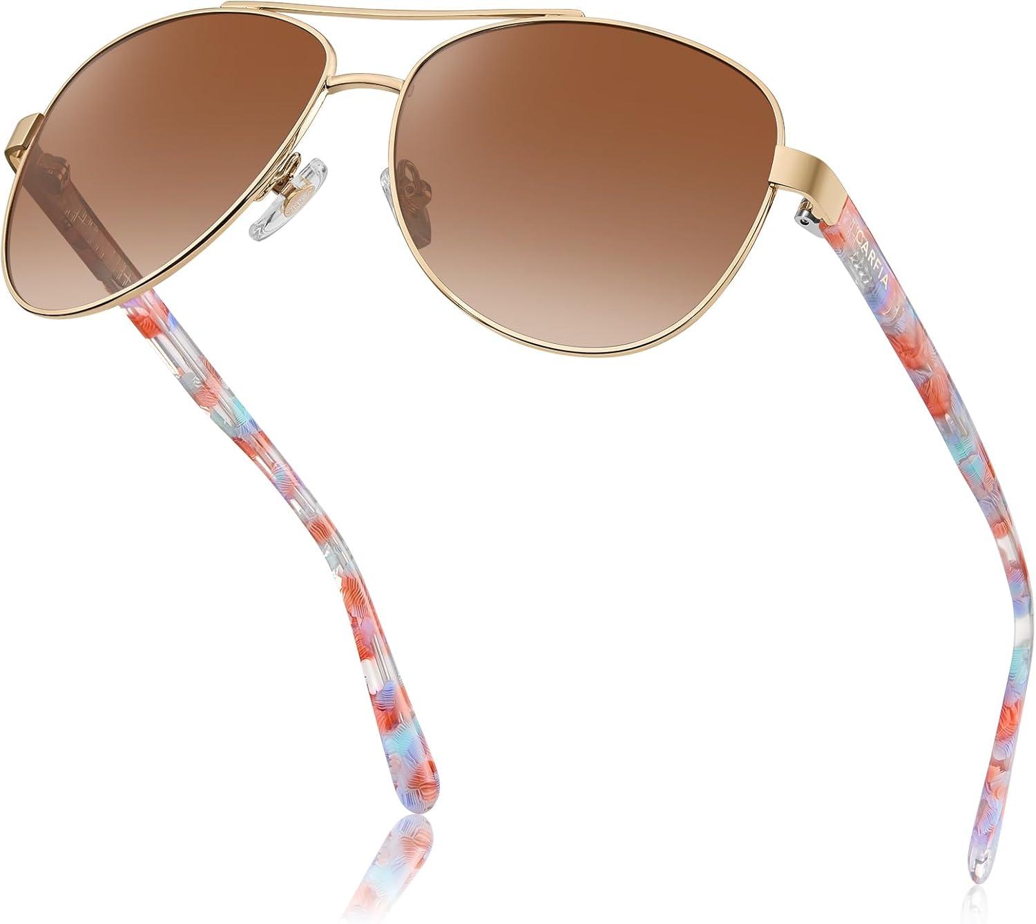 CARFIA Retro Trendy Pilot Sunglasses for Women Polarized UV Protection, Lightweight Outdoor Driving Lady Sunnies Metal Frame(7. Gold Frame Brown Gradient-red/Blue Tortoise Legs)