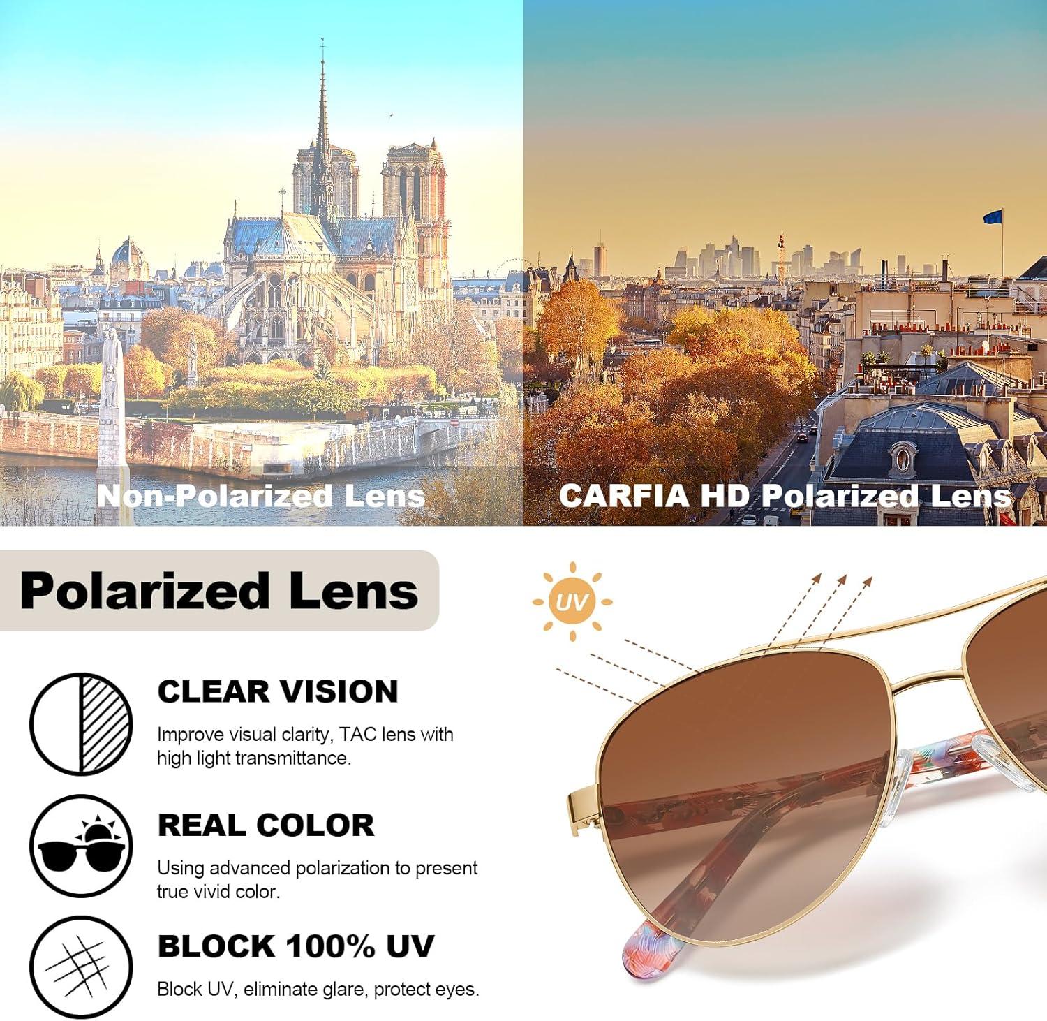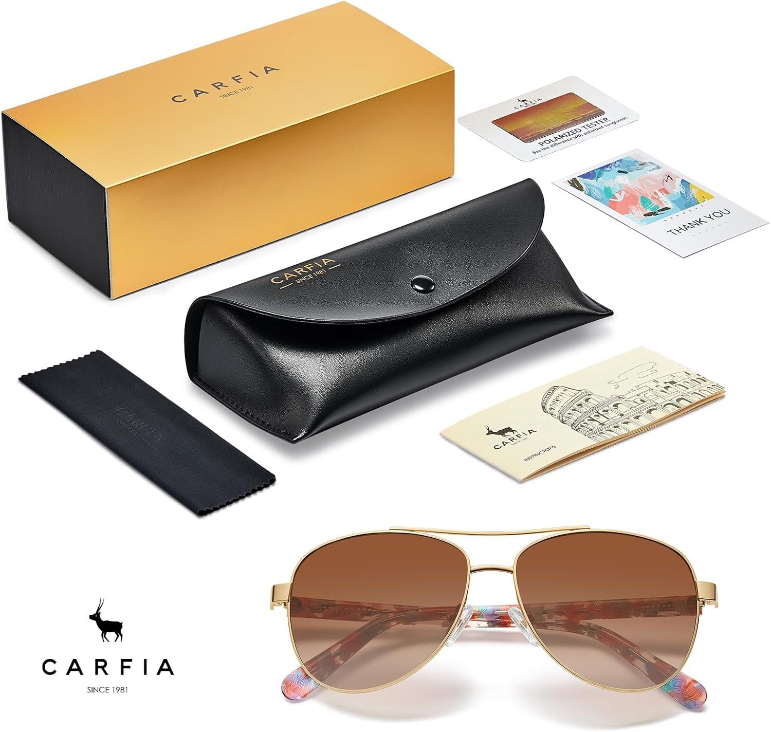 Be the first to review “CARFIA Retro Trendy Pilot Sunglasses for Women Polarized UV Protection, Lightweight Outdoor Driving Lady Sunnies Metal Frame(7. Gold Frame Brown Gradient-red/Blue Tortoise Legs)”