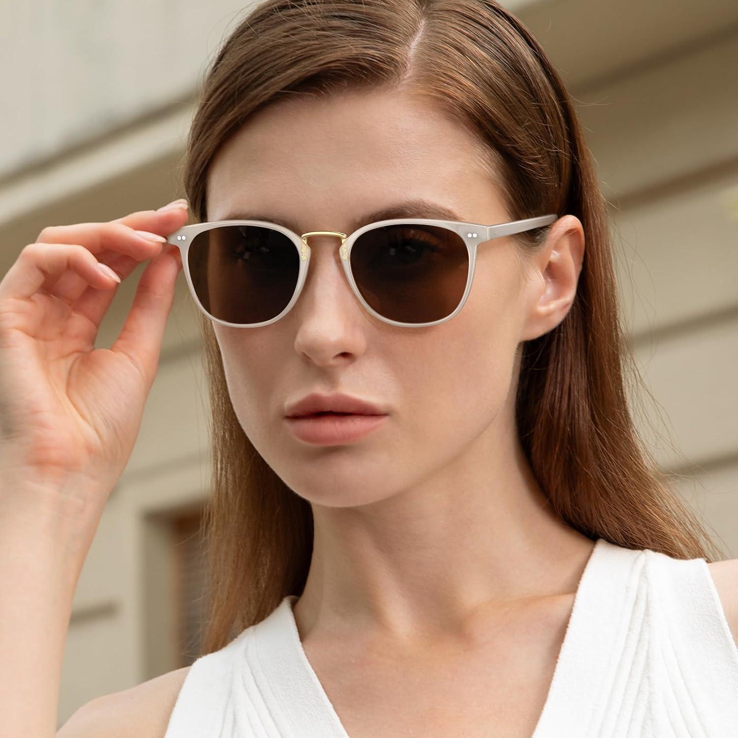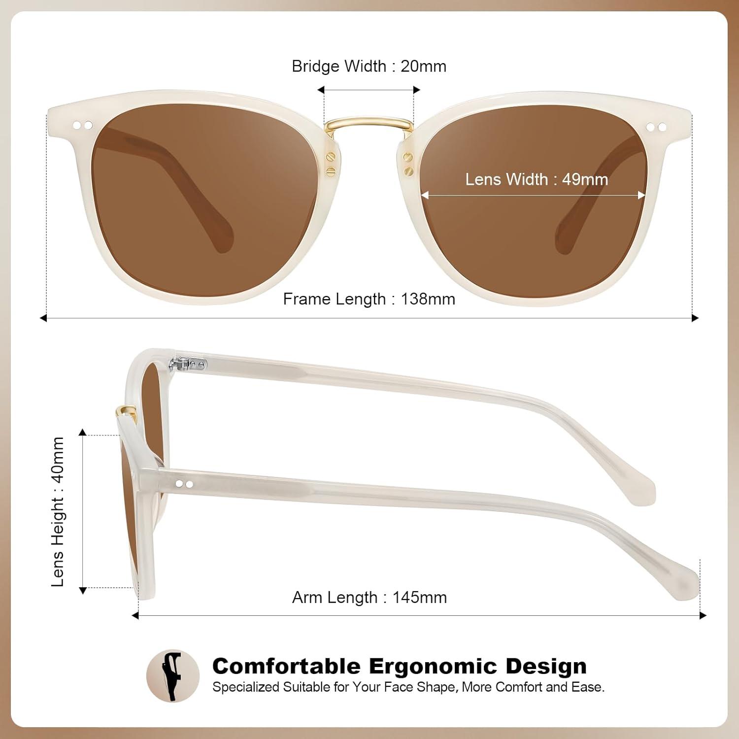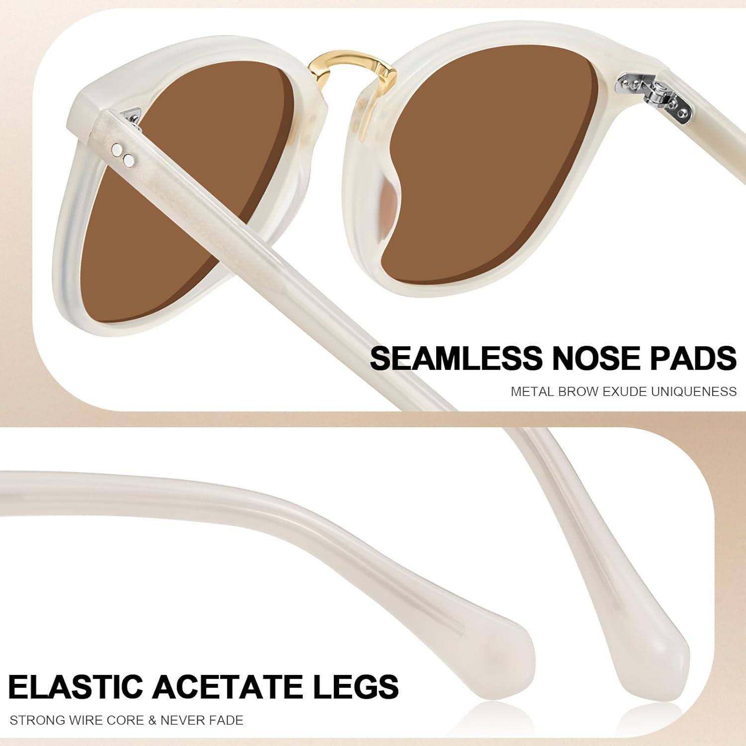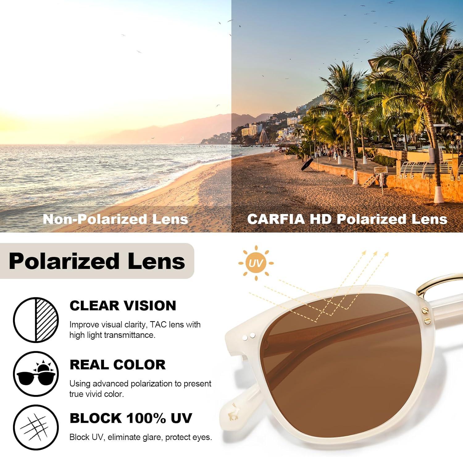 CARFIA Small Face Acetate Polarized Sunglasses for Women UV Protection, Retro Trendy Eyewear Metal Bridge Brow Ladies Sunnies(1. Light Pink Frame Brown Lens)