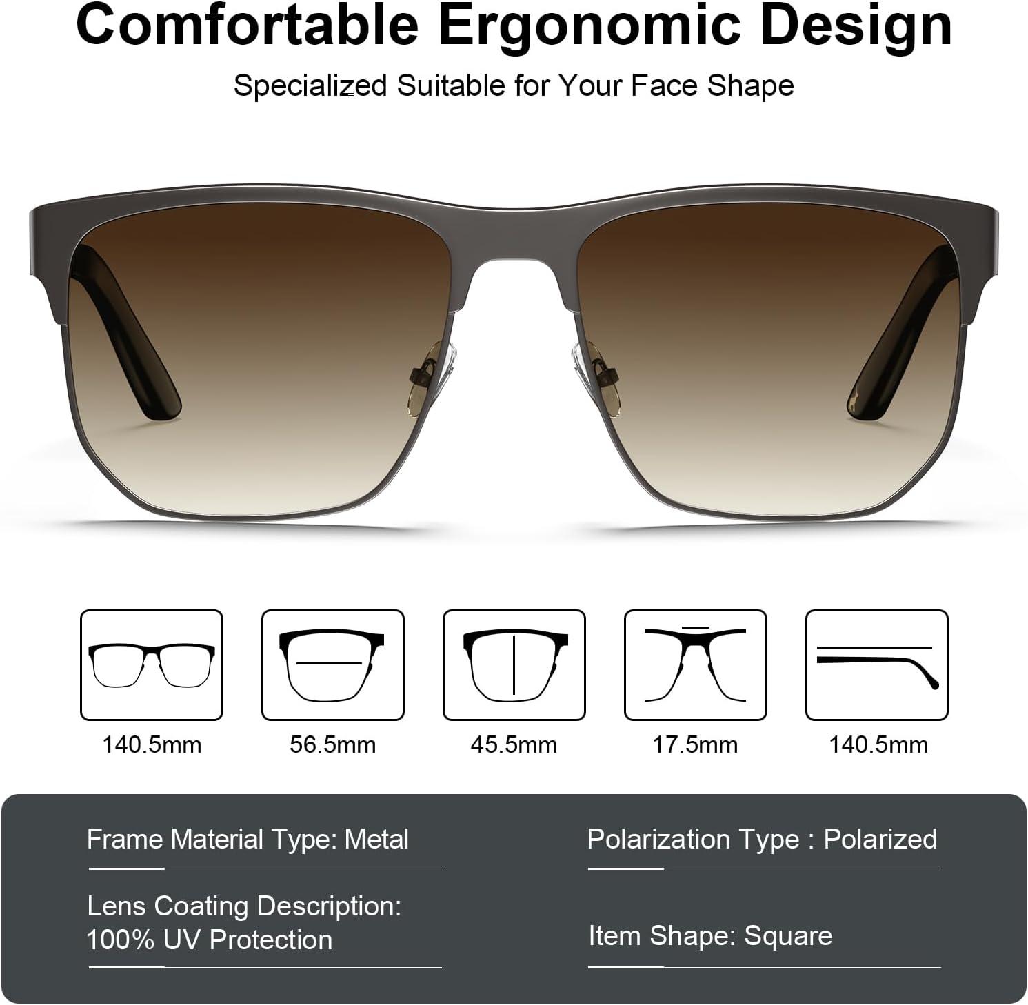 CARFIA Square Driving Polarized Sunglasses for Men Spring Hinge Eyewear CA5227(Gun Frame Gradient Brown Lens)